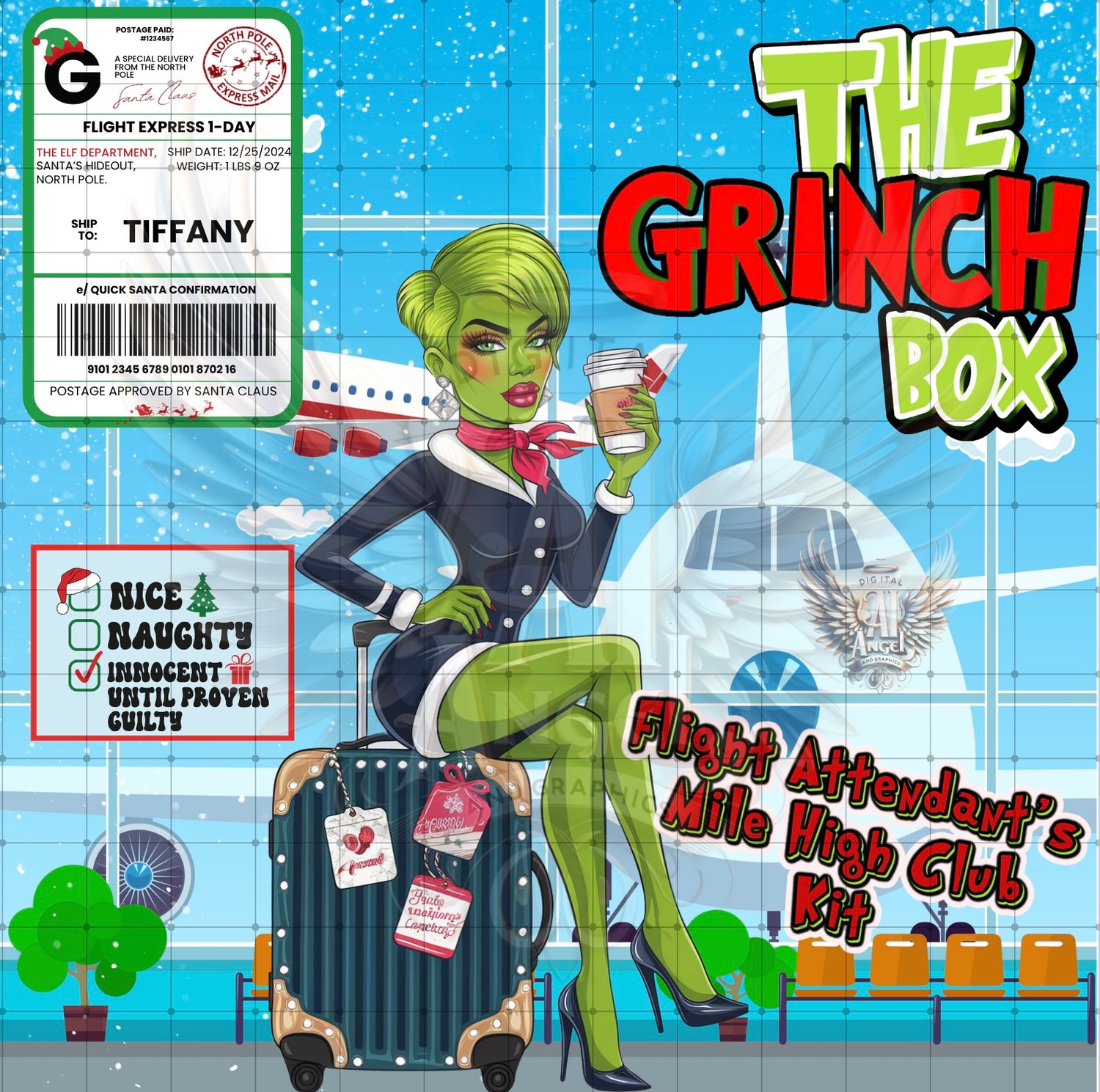 Custom Baddie Grinchmas Flight Attendant Box Design