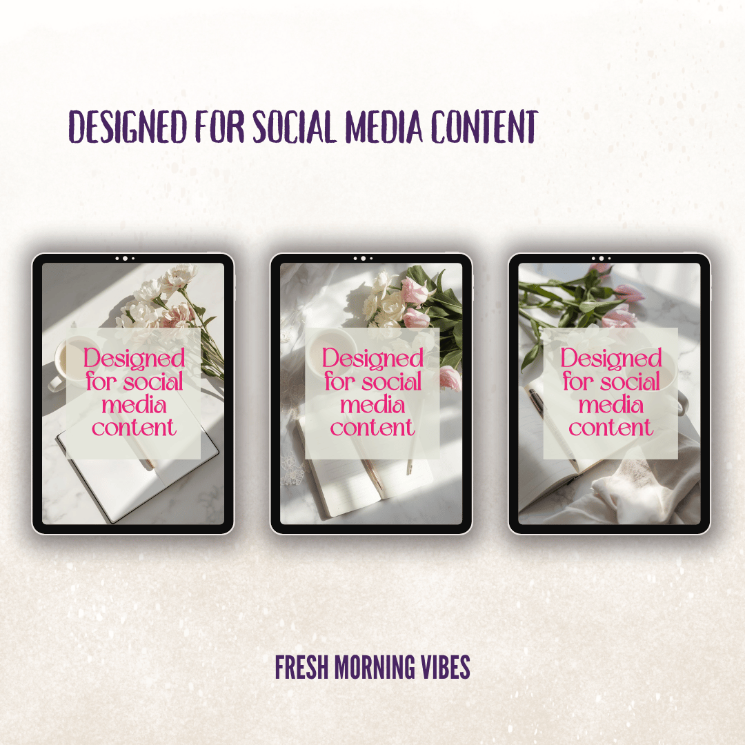 Use for overlaying motivational quotes, morning routine tips, engagement questions, habit prompts or business messages, the soft neutral tones and natural lighting make text easy to read and beautifully presented.