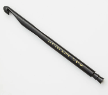 Hook used 8 mm. We can use a regular length 8mm hook as long as it does not have the thumbrest like the one shown below. No Affiliation to the store linked.