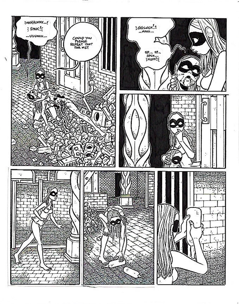 (NOTE: Many pages from Chrome Fetus Studios are composites of different drawings on multiple bits of paper and flotsam - sometimes crudely cobbled together with glue or tape. You may also find pencil marks, scribbled notes and graphite thumbprints. Consider these features as a means of certifying the genuineness of the artwork!)