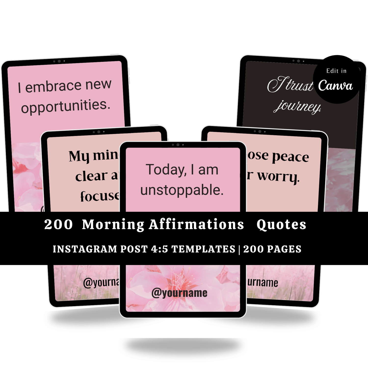 Start your mornings with purpose and positivity using these 200 Morning Affirmations Quote Templates Designed to uplift, inspire, and motivate, these templates are perfect for creating a mindful morning routine.