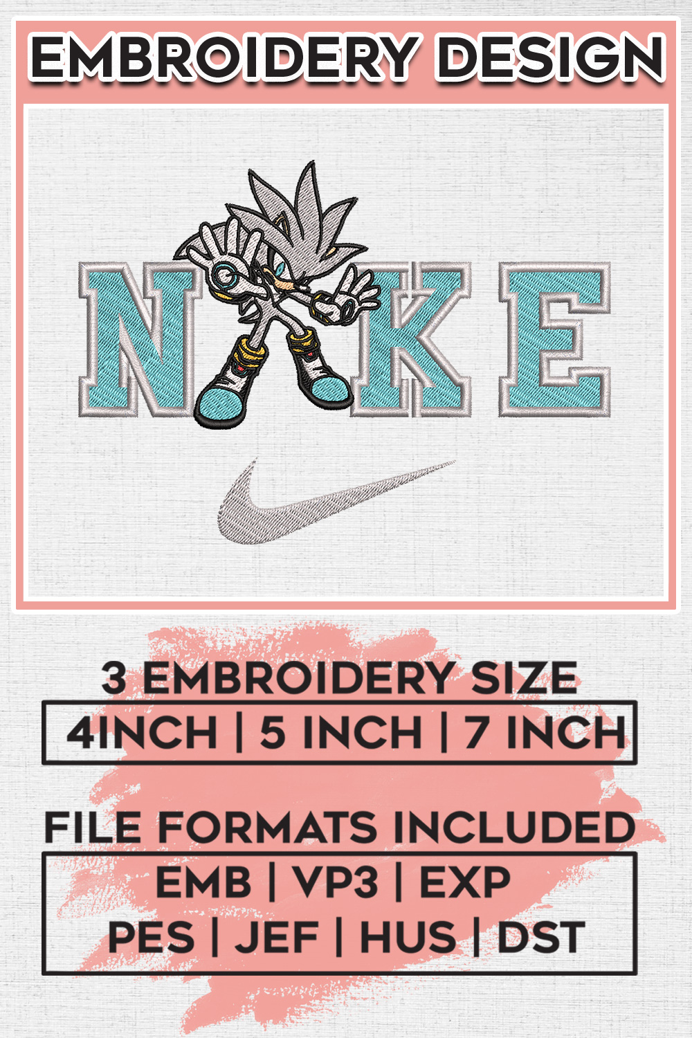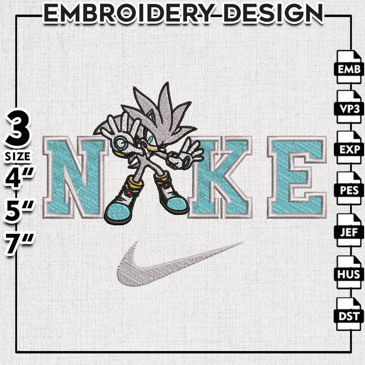 Nikee Silver The Hedgehog Character Embroidery Designs, Sonic The Hedgehog Machine Embroidery Files, Cartoon Character embroidery designs, Sonic Character, Digital Download