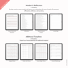 It also includes a Mindset & Reflections section, featuring a money mindset self-assessment, affirmations, and journal prompts. The journal allows you to reflect on your financial journey and celebrate your wins along the way.