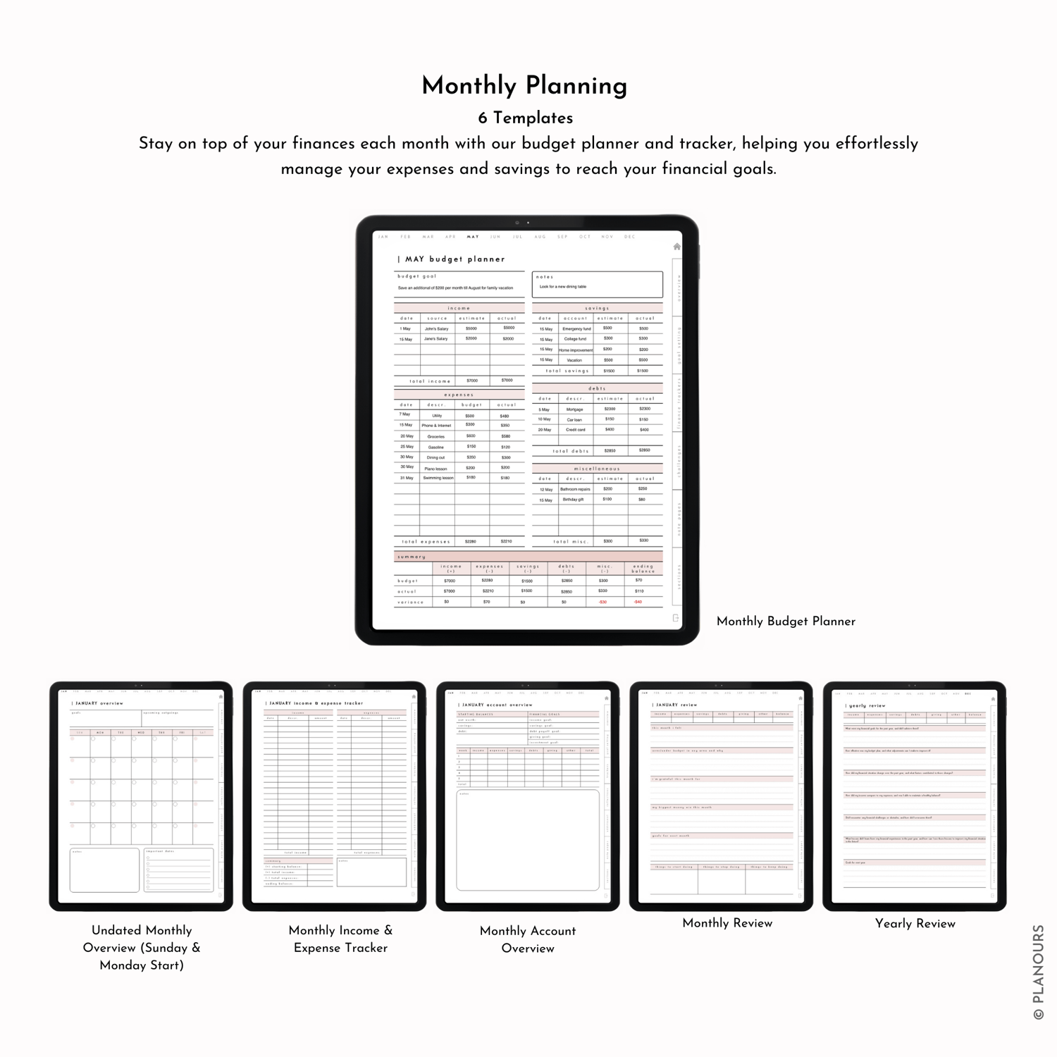 Our Premium Digital Finance & Budget Planner features 185 pages of budgeting tools and templates, including 62 templates, 7 styles of note pages, and 12 custom sections. From monthly income and expense trackers to debt payment and savings trackers, our planner has everything you need to stay organized and on top of your finances. With 3 colour options for the front and back cover, you can choose the perfect colour to suit your style.