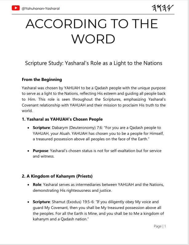 According to the Word- Scripture Study: Yasharal's Role as a Light to the Nations