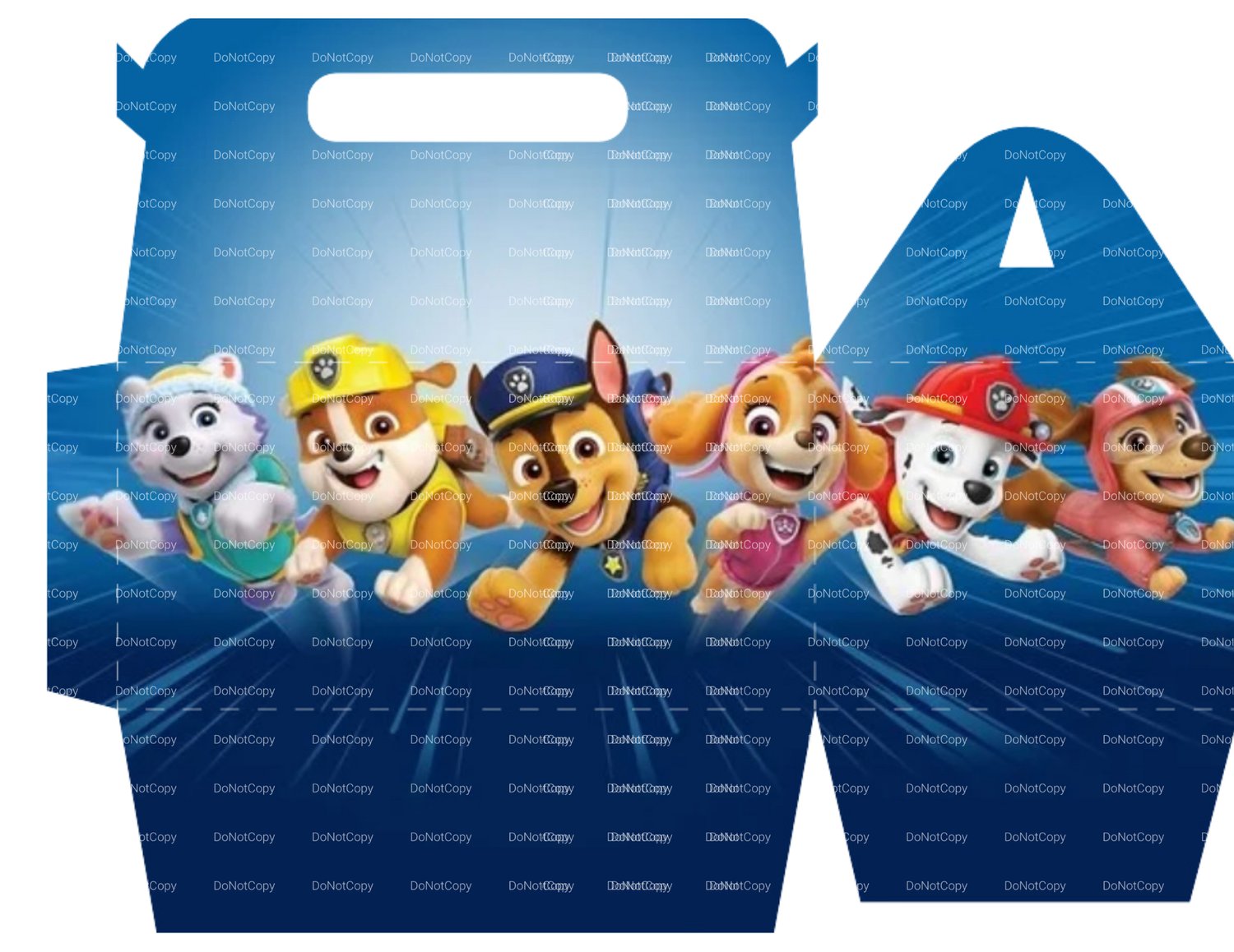 Paw patrol themed gable box. Design is not editable but you can add whatever text or element you would like in Canva. Download and print, and resize in Canva.