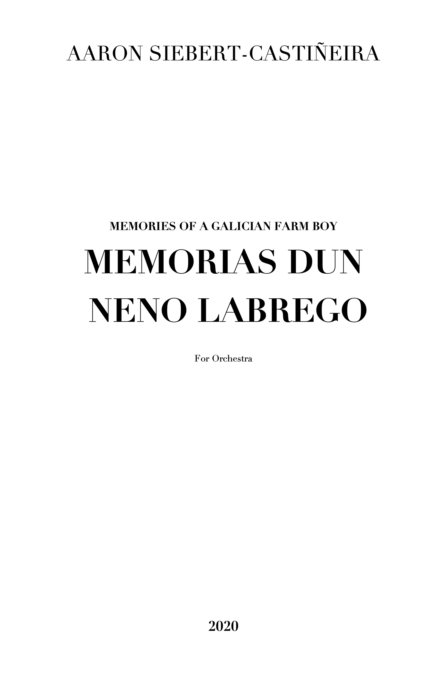 Full Study Score (digital download) of Memorias Dun Neno Labrego, commissioned by the Royal Philharmonic Orchestra of Galicia.