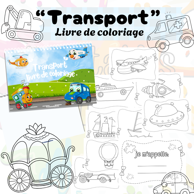 Découvrez notre livre de coloriage “Transport” – un cahier ludique et éducatif rempli de véhicules amusants et souriants ! Ce livre de coloriage pour enfants est parfait pour stimuler la créativité, développer la motricité fine et apprendre les noms des moyens de transport tout en s'amusant.