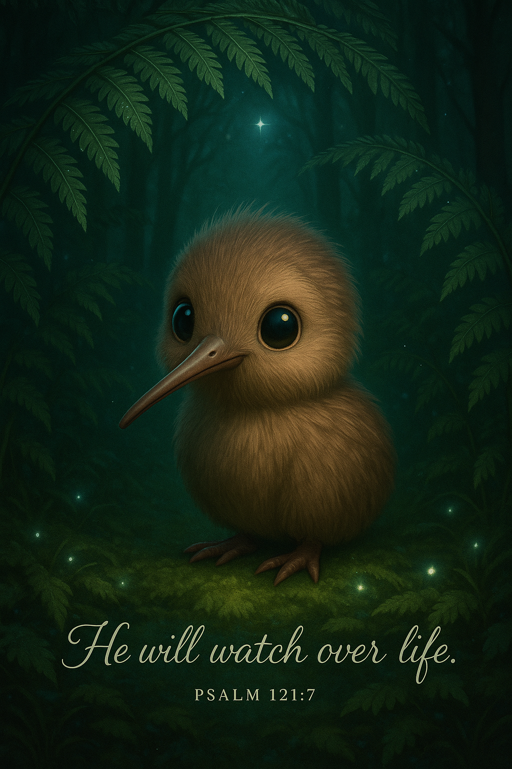 πποΈ Christian Protection Wall Art β Psalm 121:7 Kiwi Bird & Forest Poster β Faith-Based Printable for Devotion, Homeschool & Ministry β Divine Watchfulness Theme