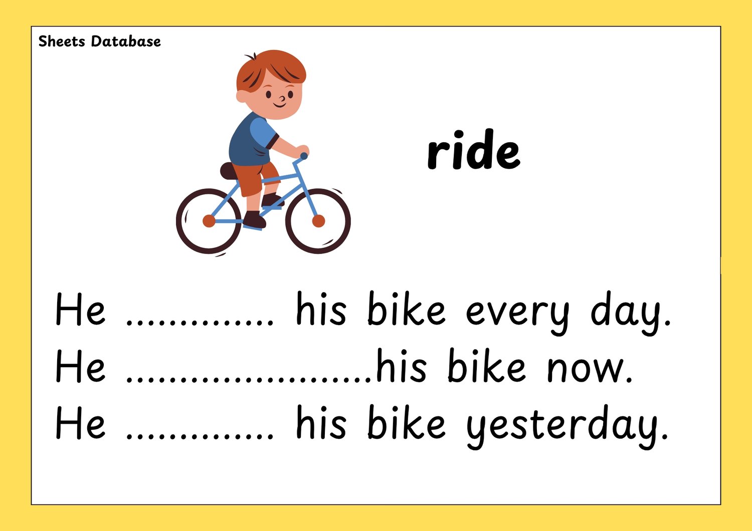 ride, cook, play, swim, read, watch, study, clean, bake, run, and go.