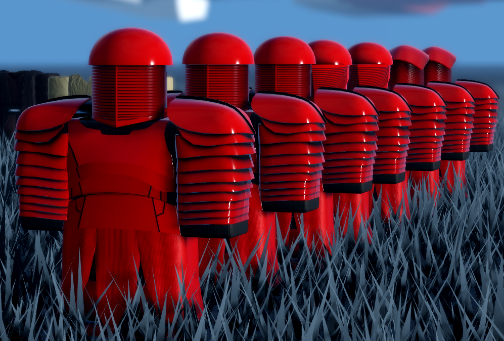 The Praetorian Guards are Supreme Leader Snoke's Elite Praetorian Guards, elite, human bodyguards distinguished by their ornate crimson armor and unique melee weapons. Eight of these guards served as Snoke's personal protectors, trained to meet any threat with a savage and ferocious response, a deliberately designed echo of the Emperor's Royal Guards from the Galactic Empire.
