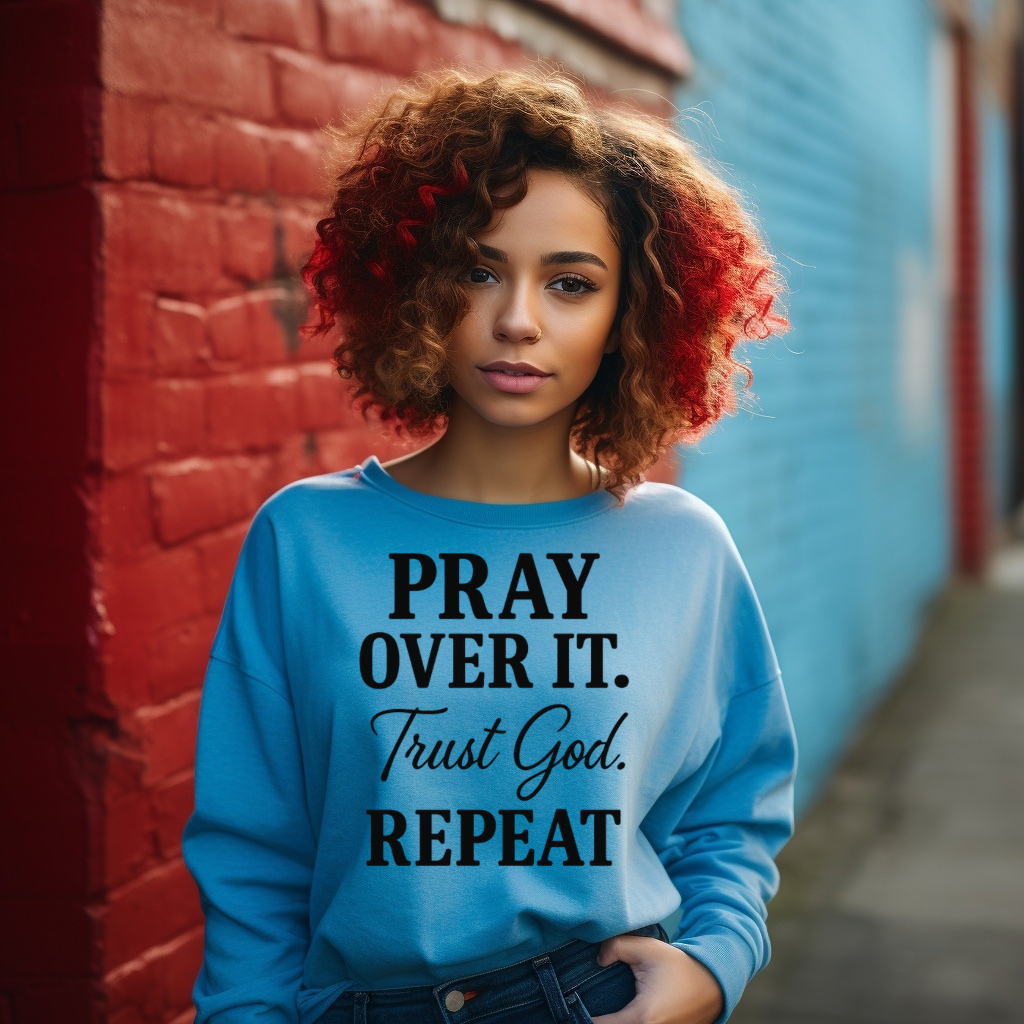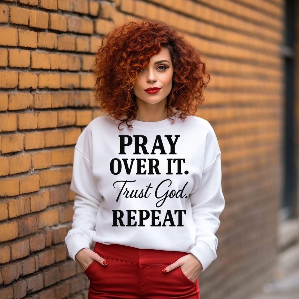 This “Pray Over It. Trust God. Repeat.” PNG design is perfect for faith-driven creators and believers who walk by faith, not sight.