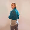 Size: 36" at bust, pictured here on a model with 37" bust (due to the open front, the garment would accommodate a larger or smaller frame)