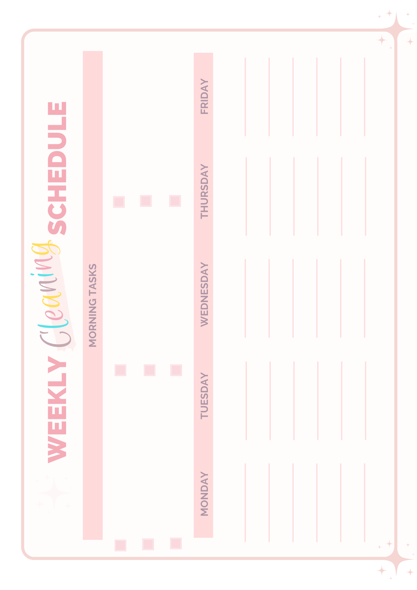 - Pretty planning templates to help you create your own cleaning schedule that is easy to stick to