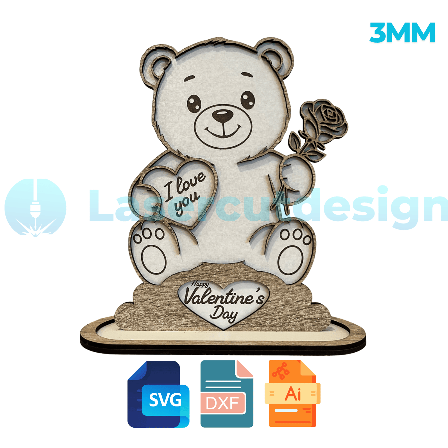 Valentine's Bear Gift - Files For Laser Cutting, SVG,DXF,AI Files Template , Laser Cut Pattern 3mm