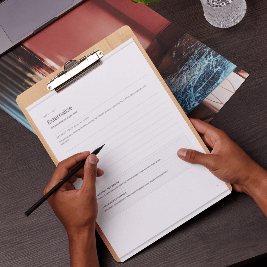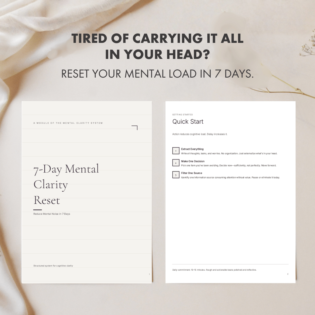 The 7-Day Mental Clarity Reset is a structured system designed to reduce mental noise, decision fatigue, and information overload.