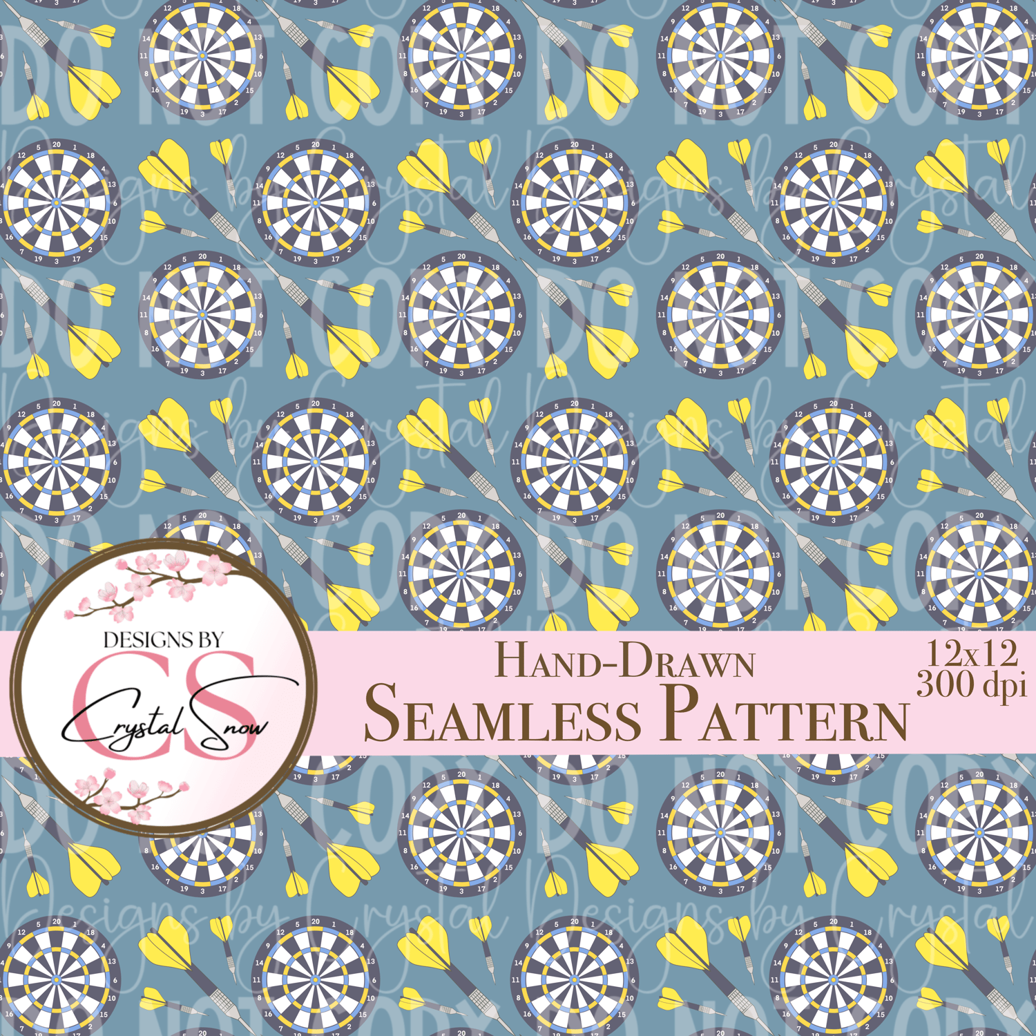 Darts & Dartboards Seamless Pattern | 12x12 Hand Drawn Game Night Tile | Yellow Dart PNG for Sports Crafts, Tumblers & Designs