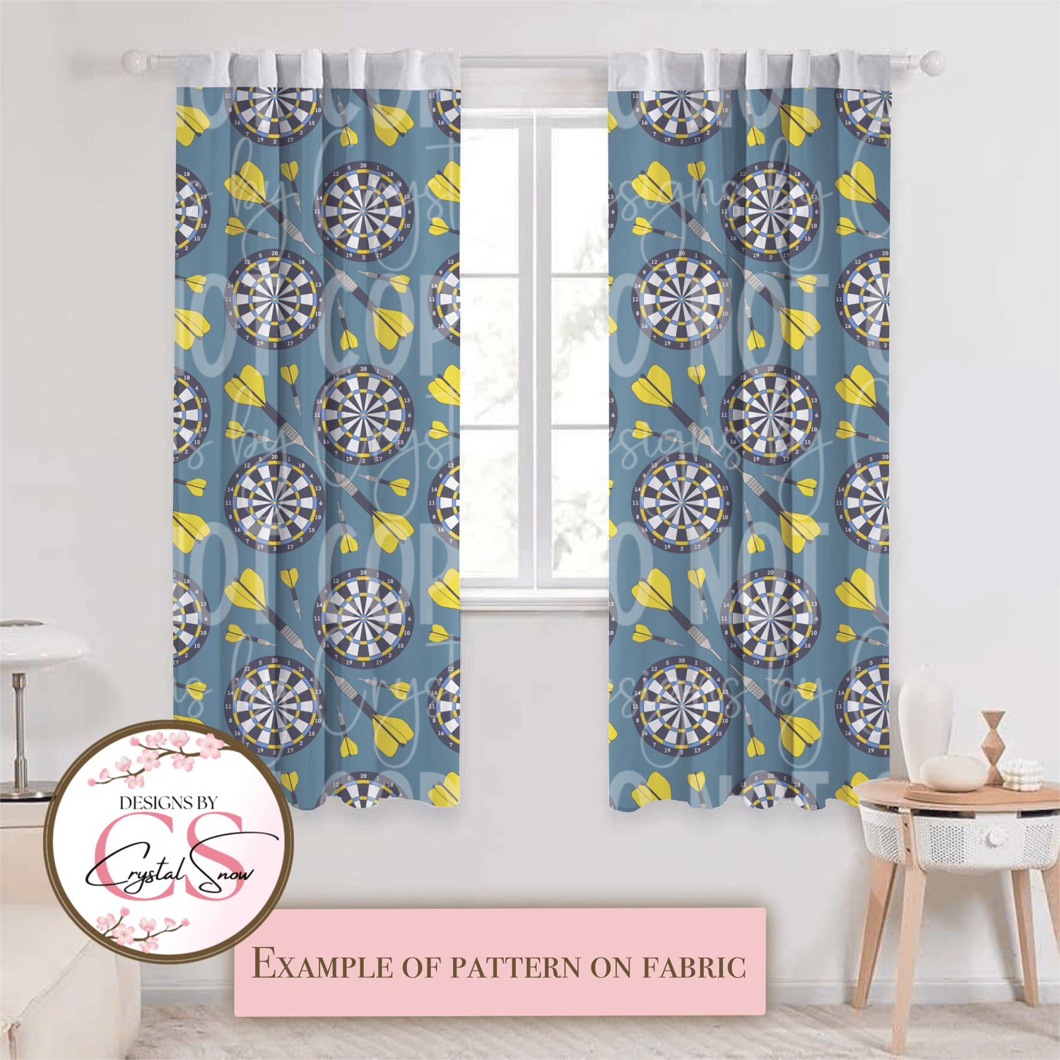 This hand-drawn seamless tile features dartboards and yellow darts laid out on a cool blue background, designed for sports-themed crafts and DIY projects. Whether you're making gifts for a dart lover, designing tumbler wraps, or crafting digital party invites, this pattern delivers the vibe of fun competition and pub game nights.