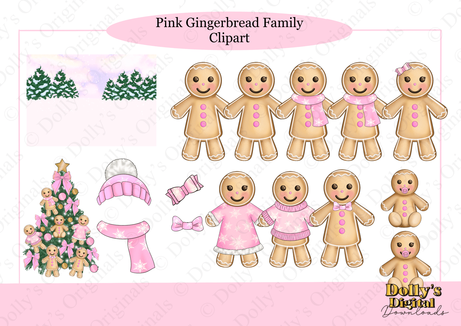 Includes the Pink Gingerbread Family Clipart Pack (16 PNGs)