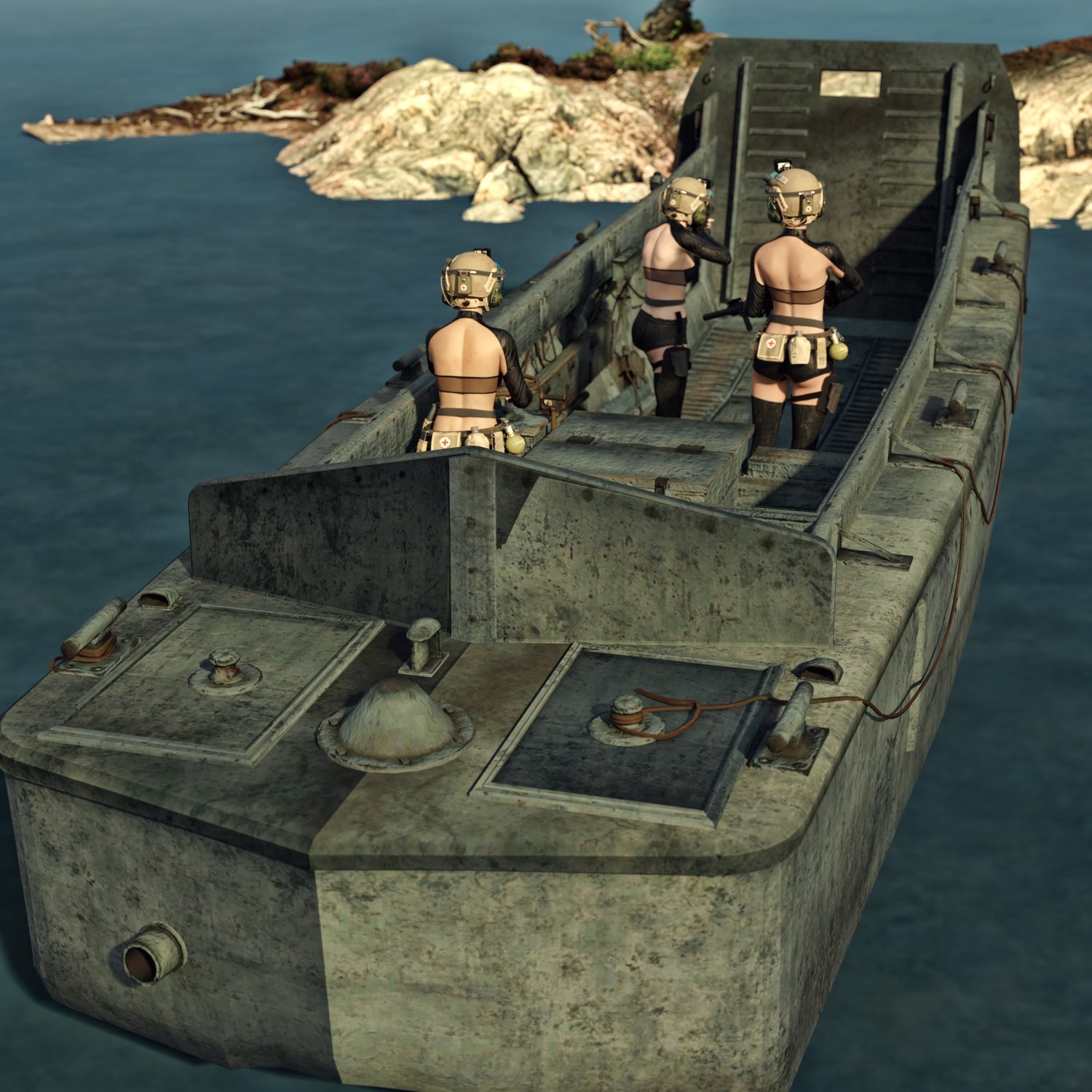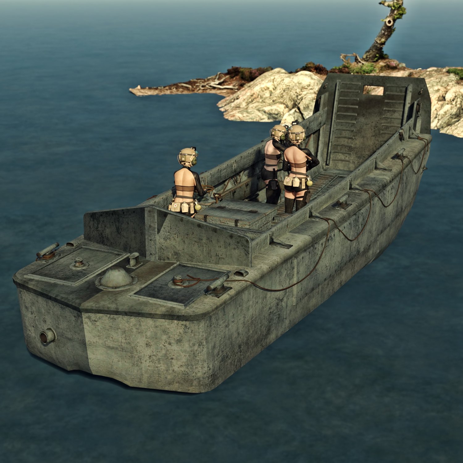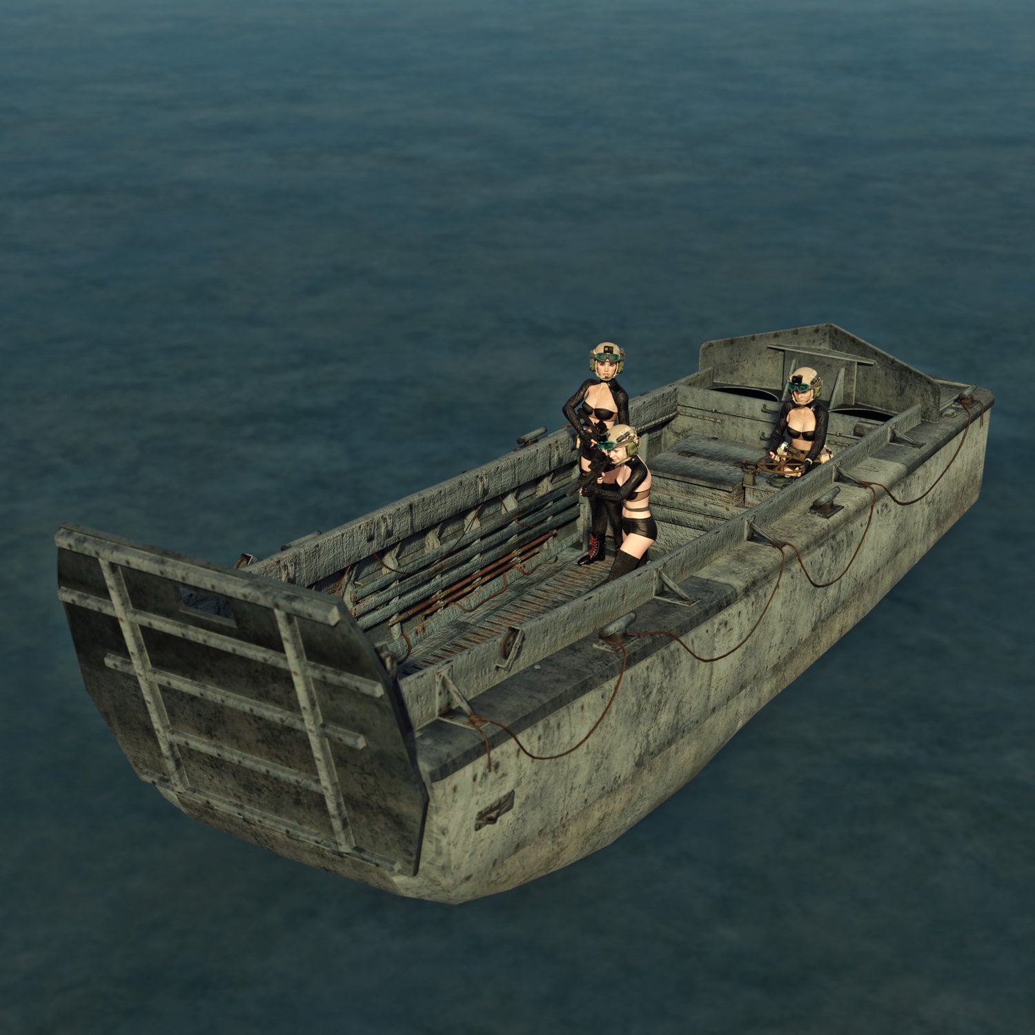 A landing boat for your war missions. or some covert operations. Or anything related :D the ramp is rigged and so is the steering wheel. The prop is converted and rigged for DAZ.