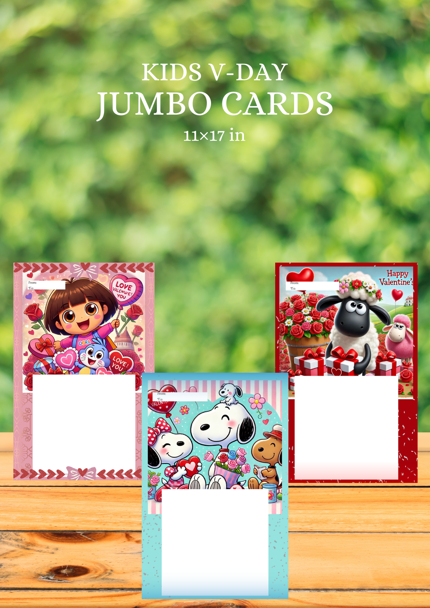 Celebrate love with our Kids Valentine's Day Jumbo Cards! Featuring 10 fun and colorful designs, each card showcases adorable cartoon characters, perfect for adding joy to your little one’s Valentine. These large, eye-catching cards have plenty of space to write sweet messages and make every celebration extra special. Ideal for school exchanges, gifts, or simply spreading love!