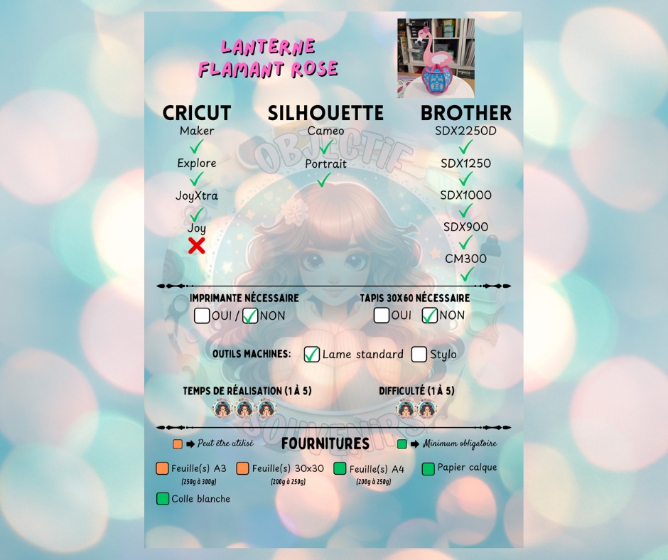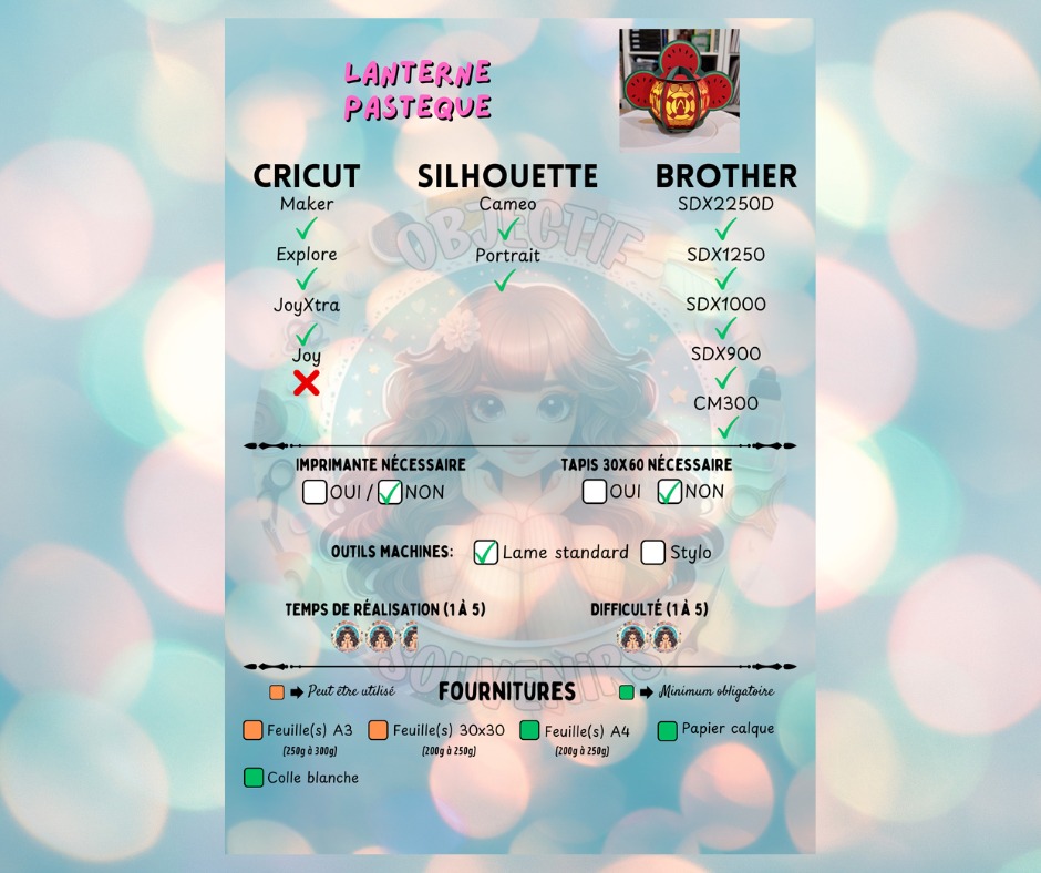 La découpe de lanterne à la machine se veut assez minutieuse. Pour une découpe propre et réussie des éléments les plus fins (les 6 parties qui ferment la lanterne) je vous conseille de mettre un tapis propre, une lame récente et peu usée et de régler les paramètres matériaux sur « papier cartonné pour découpes complexes » (pour les Cricut car je ne connais pas les paramètres matériaux des autres machines).