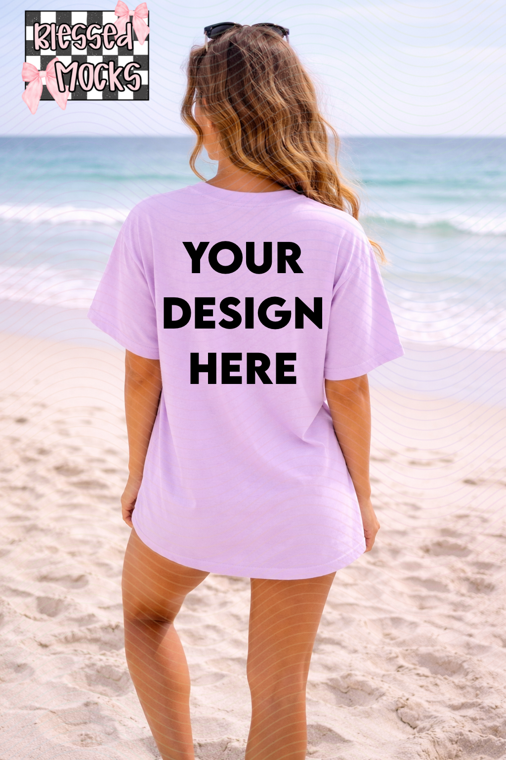 Comfort colors Orchid T-shirt-Back-Beach Mock Up