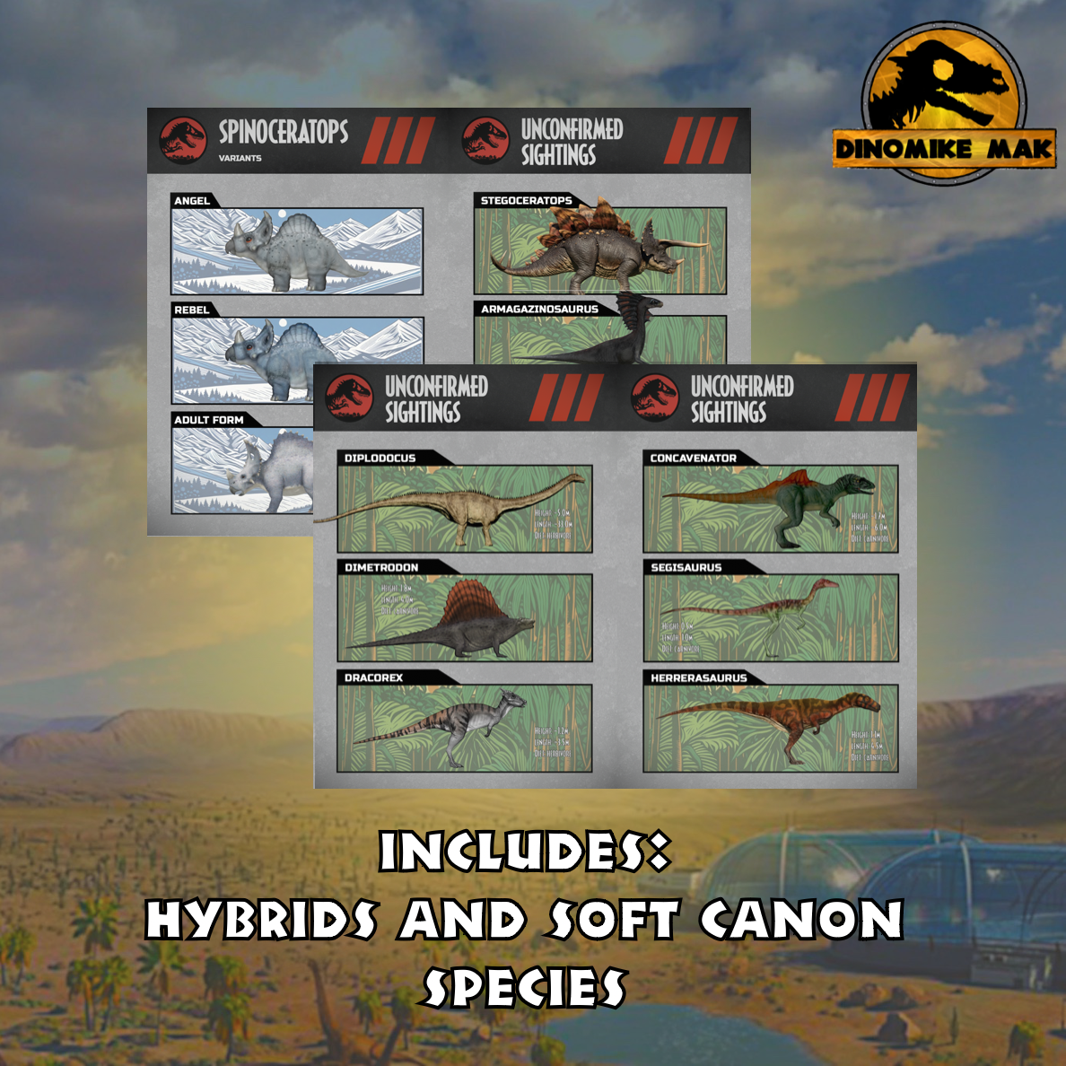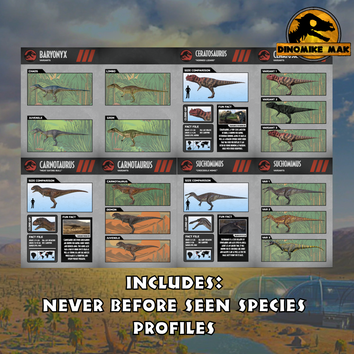 This fully customisable binder book lets you personalise your field guide and select the species profiles you want! Featuring never before seen renders, you have a choice from all your favourite dinosaurs from Jurassic Park 1993 and the Jurassic Park telltale games to the latest installment Jurassic World Choas Theory. Accompanied by fun facts about the in universe dinosaurs, this is the ultimate guide to the dinosaurs of the Jurassic Franchise.
