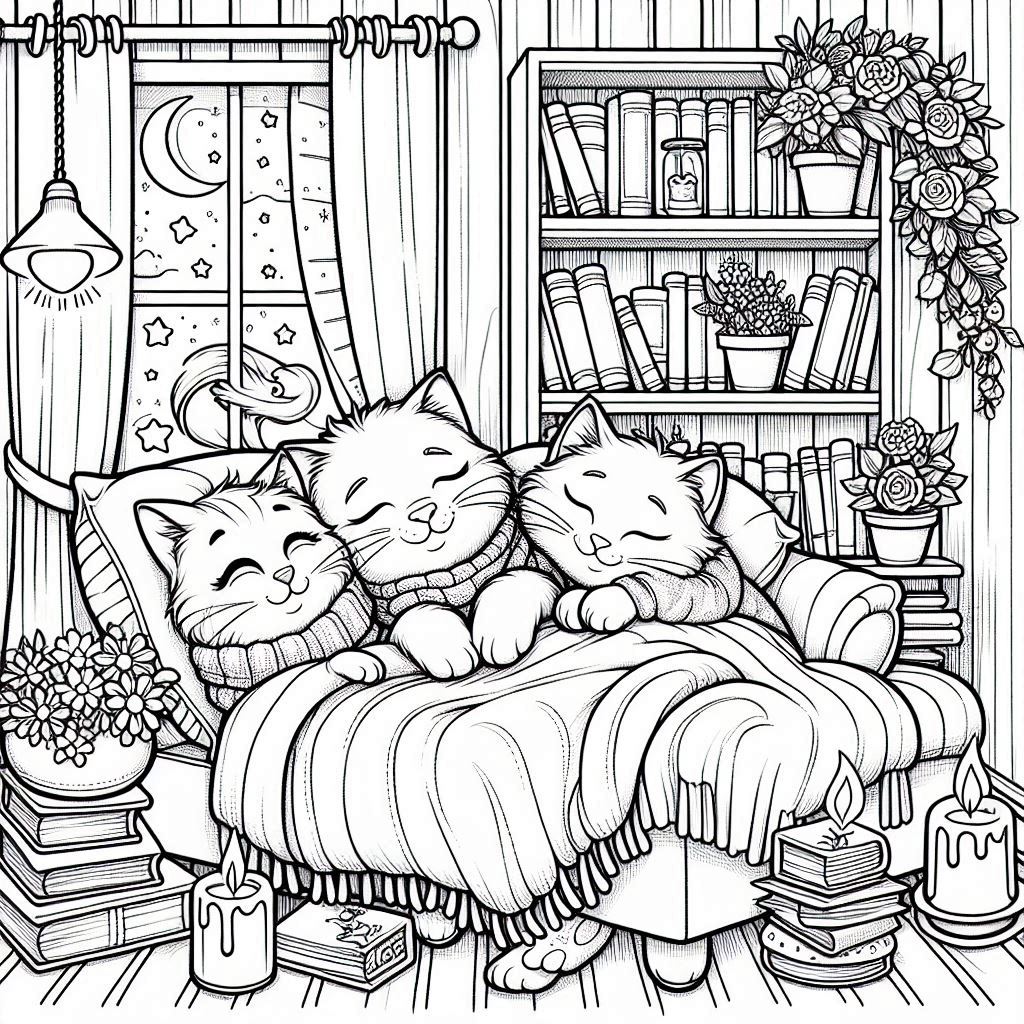 Cozy cats corner, coloring ebook, 78 designs, digital product, instantly download