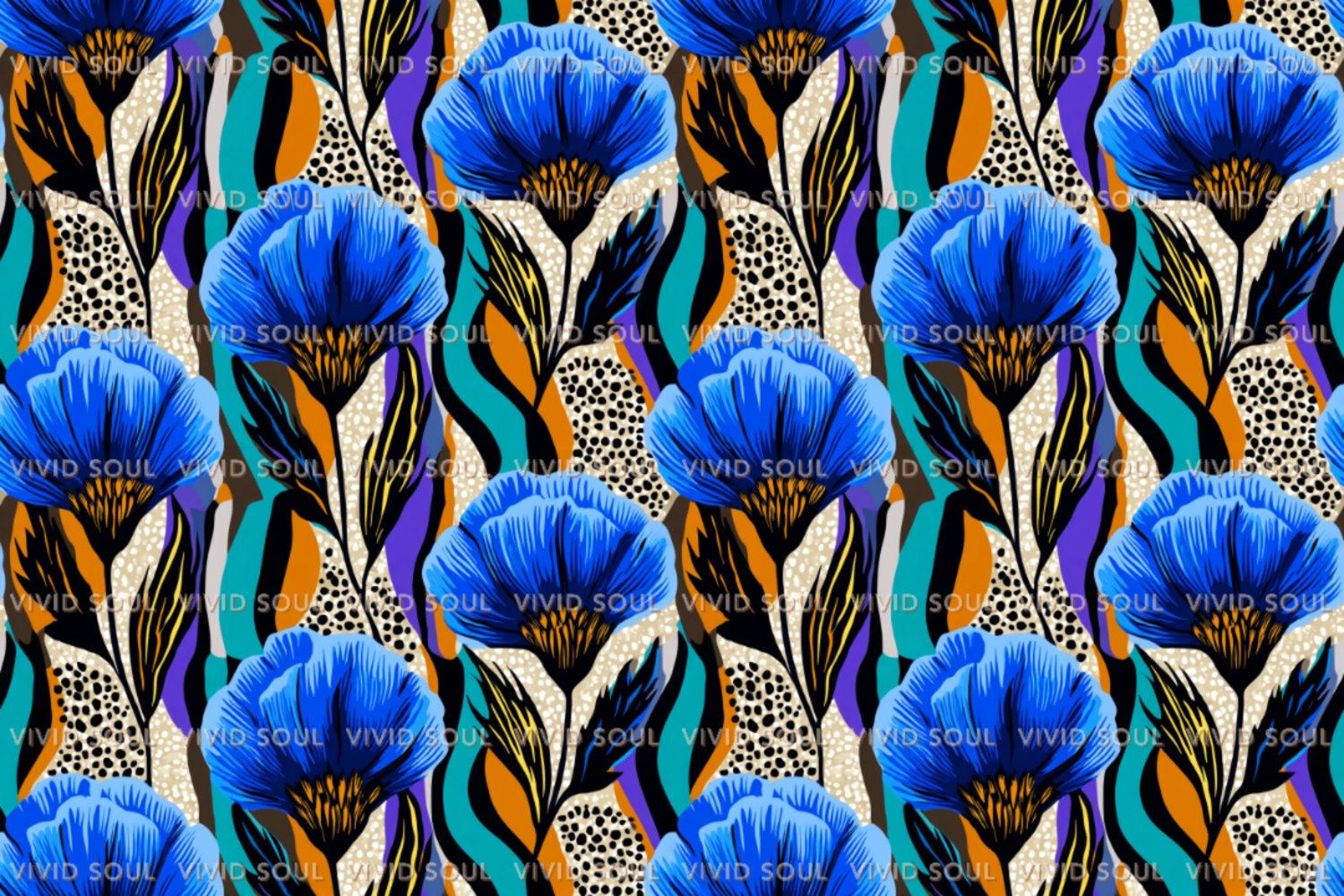 Unleash the bold beauty of nature with this Blue Cornflowers+ Seamless Pattern Bundle, an Ankara-inspired collection designed for vibrant, creative expression. These 30 high-resolution PNG files feature stunning blue cornflower motifs, richly layered with abstract African textiles and wild organic shapes. Perfect for sublimation projects, fashion design, digital backdrops, product packaging, fabric prints, and more.