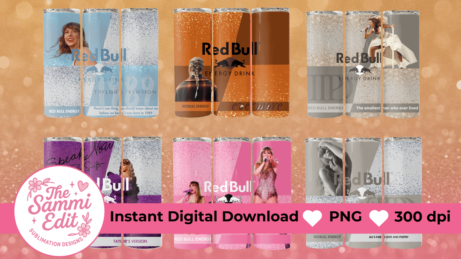 Viral Taylor Swift Redbull Tumbler Wrap Bundle – 14 Never-Before-Sold Designs | 20oz Skinny PNGs | Swiftie Aesthetic Sublimation