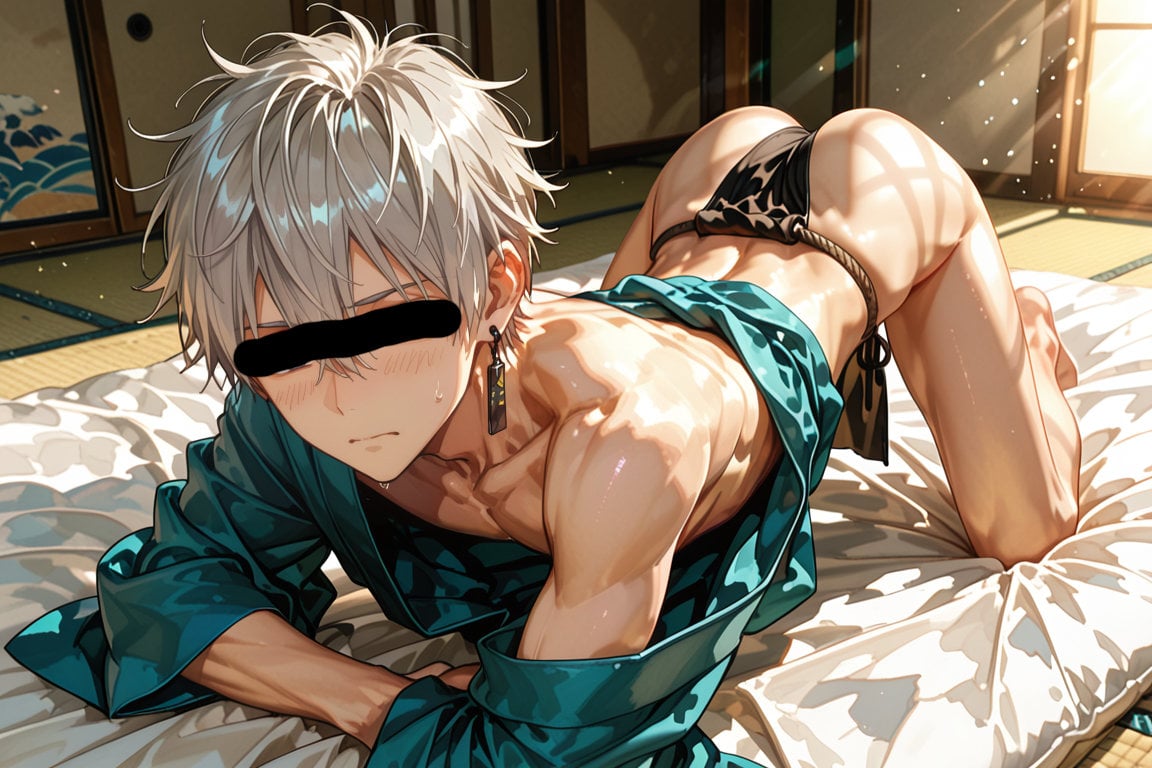 日本の正月をテーマに、着物を着用している男性を、キャラクターごとにお任せ作成しました。男らしいキャラクターの魅力を思い切って表現しました。