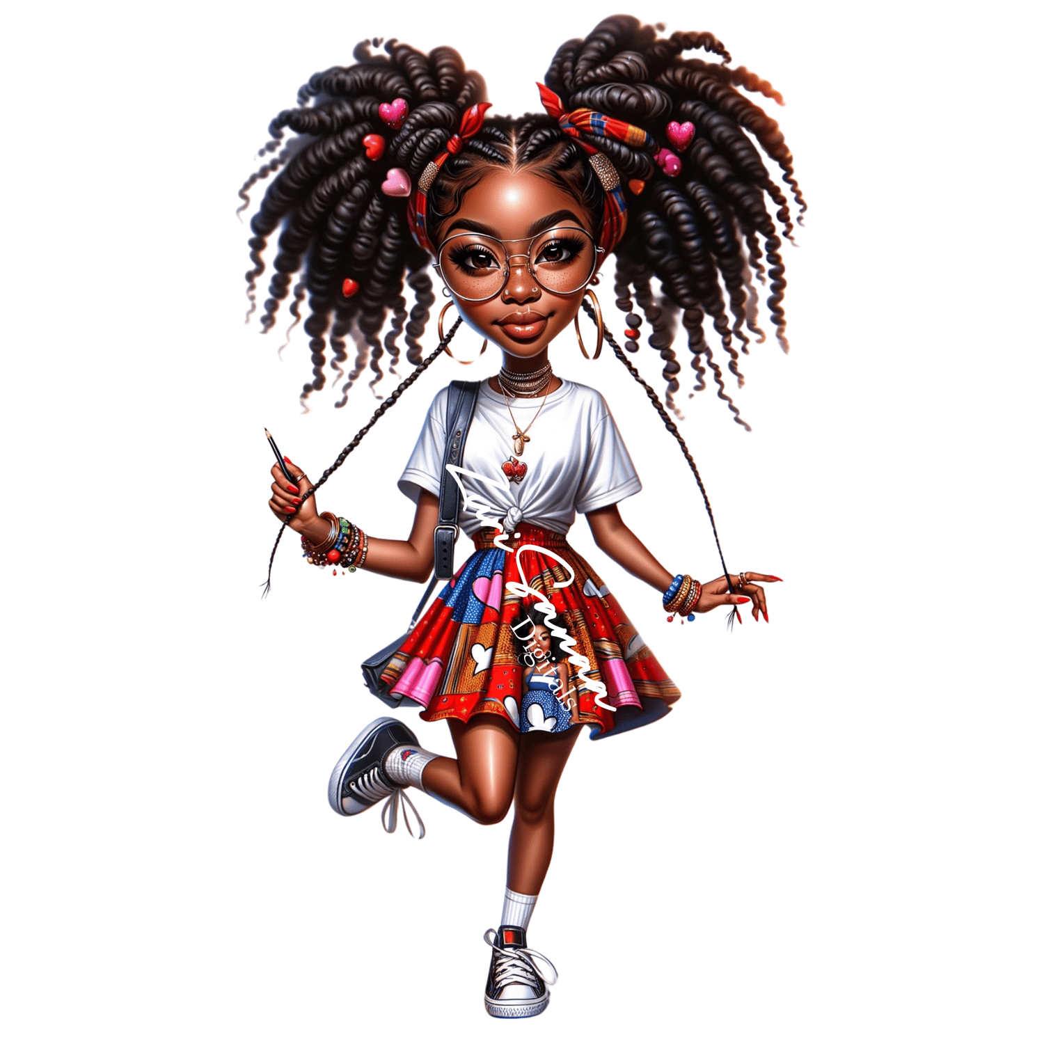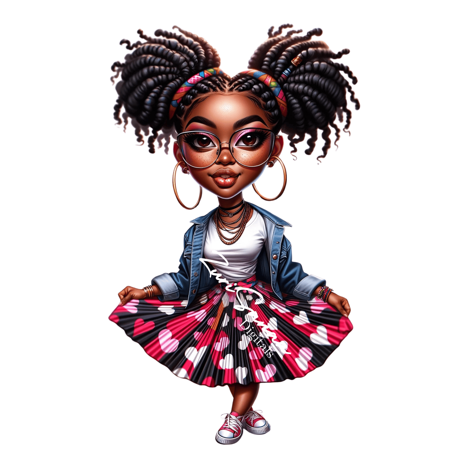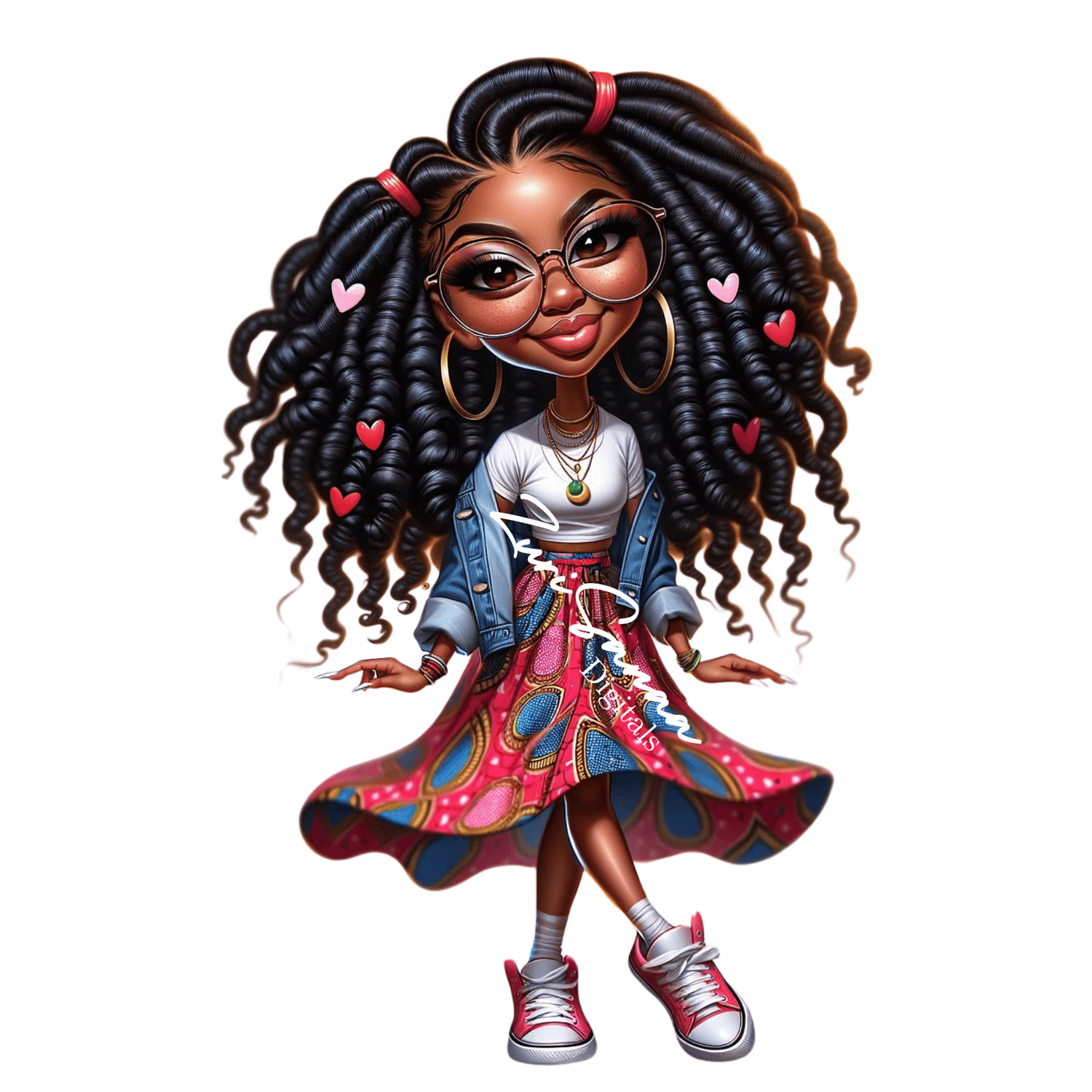 PNG Bundle - Fashionable Young Black Woman Caricature, Airbrush Style, Afrocentric Outfit - Digital Download"
