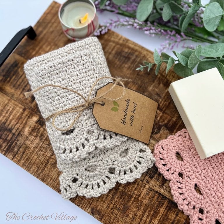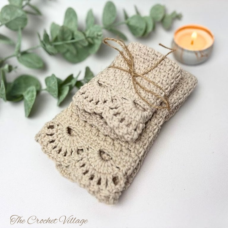 Create elegant handmade washcloths and matching towels with the Ambrosia Crochet Pattern.