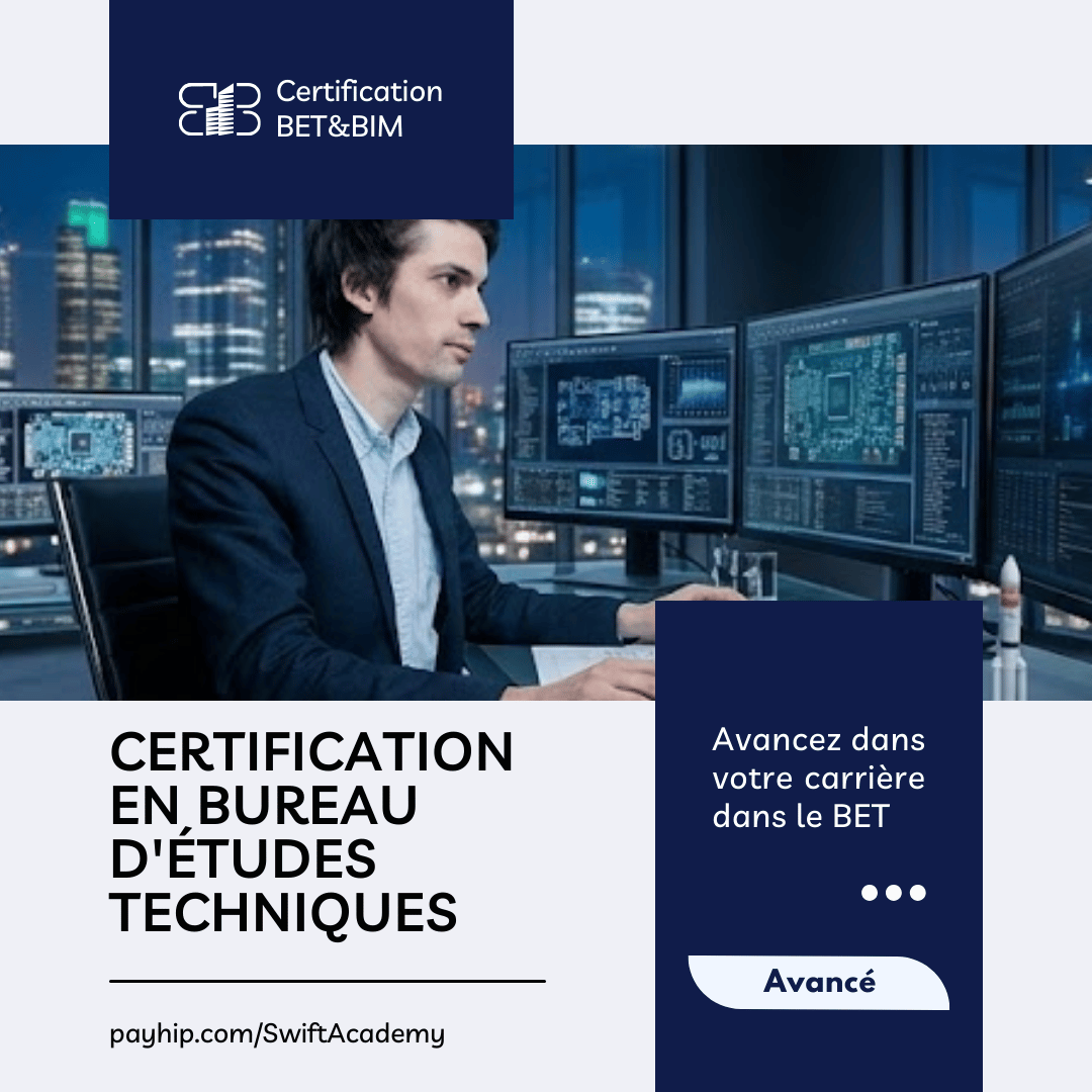 La formation BET & BIM — Avancé, 100 % en ligne, est destinée aux ingénieurs et techniciens des bureaux d’études techniques souhaitant renforcer leurs compétences en conception et dimensionnement des structures en béton armé tout en comprenant les principales normes internationales du génie civil. Elle combine des vidéos pédagogiques immersives, des guides pratiques, des supports détaillés et des feuilles de calcul pour accompagner chaque étape de l’apprentissage.