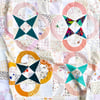 Let’s make flowers! Blossom & Bloom is a cheerful modern quilt pattern featuring curved piecing. The pattern includes charts and directions for an alternate layout, as well as fabric requirement charts for making the flowers from fat quarters, layer cakes, or scraps. There are so many ways to make this quilt reflect your unique style and fabric stash!