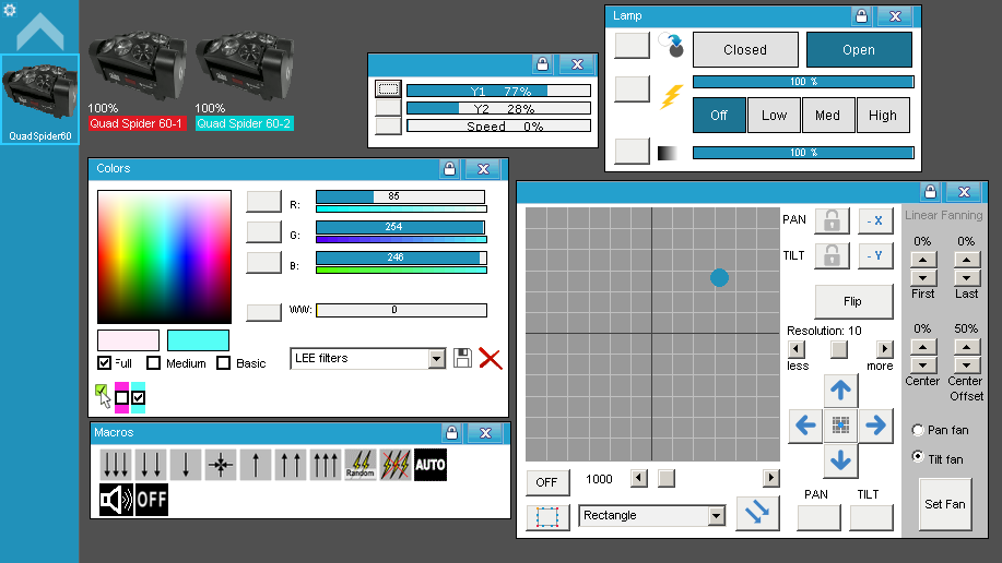 - Movimientos independientes de ambas barras desde el panel de Pan y Tilt. Con X controlan la barra 1 y con Y la barra 2.