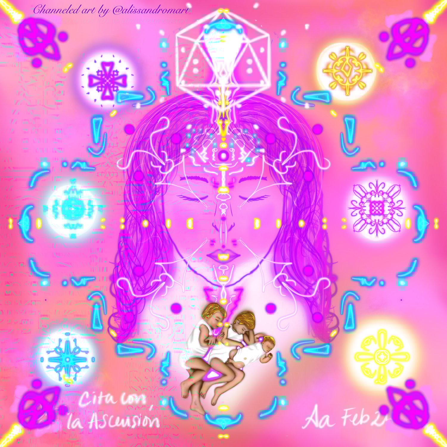 All the information of light-love codes within the channeled artworks of the Appointment with Ascension, are a collective information received in unity with each host (@pausameditationstudio, @junkdna and @thequantumlight), facilitators (@aishaluzyamor, @celiacoronelzegarra, @jossyhalabi, @claudiahalabi24) and assistants, is a channeling in unity granted by the high spheres of light ascended masters, archangels, families of light and stars; Therefore, one third of what is received in the energy exchange is reserved to continue spreading and expanding the light and knowledge of this free encounter.