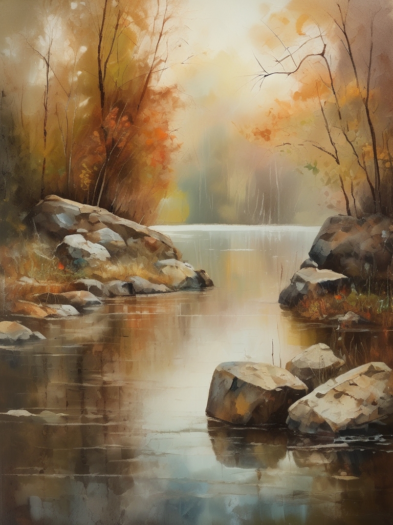 Forest Lake, Autumn Lake, Vintage Oil Painting, Farmhouse Wall Decorations, Antique Landscape, Vintage Landscape Oil Painting.