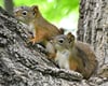 This is a photo I took of a couple of three American Red Squirrels soon after they had emerged from the nest. They were born in the spring of 2024. The father of these two is Mr. Bickles The Squirrel and their mother is Freda.