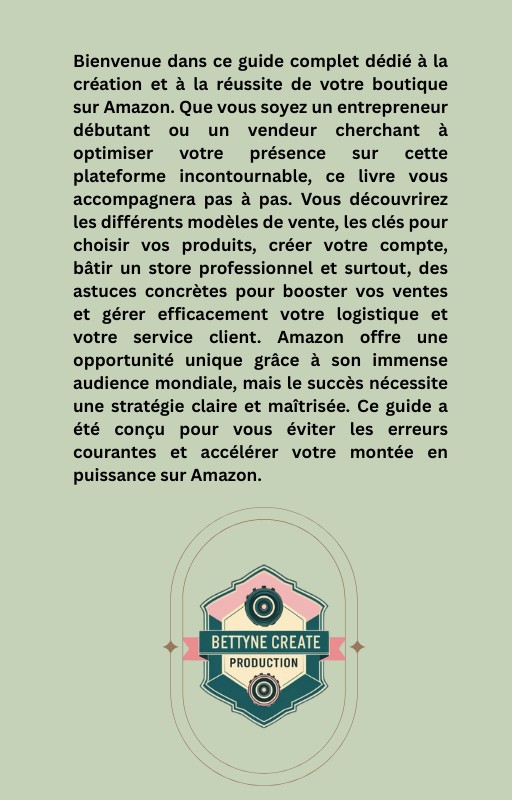 Créer et Réussir Votre Store sur Amazon est le guide pratique qui vous montre, étape par étape, comment lancer votre boutique, attirer des clients et générer des ventes rapidement. Simple, clair et efficace, c’est l’outil parfait pour transformer vos idées en revenus réels sur Amazon.