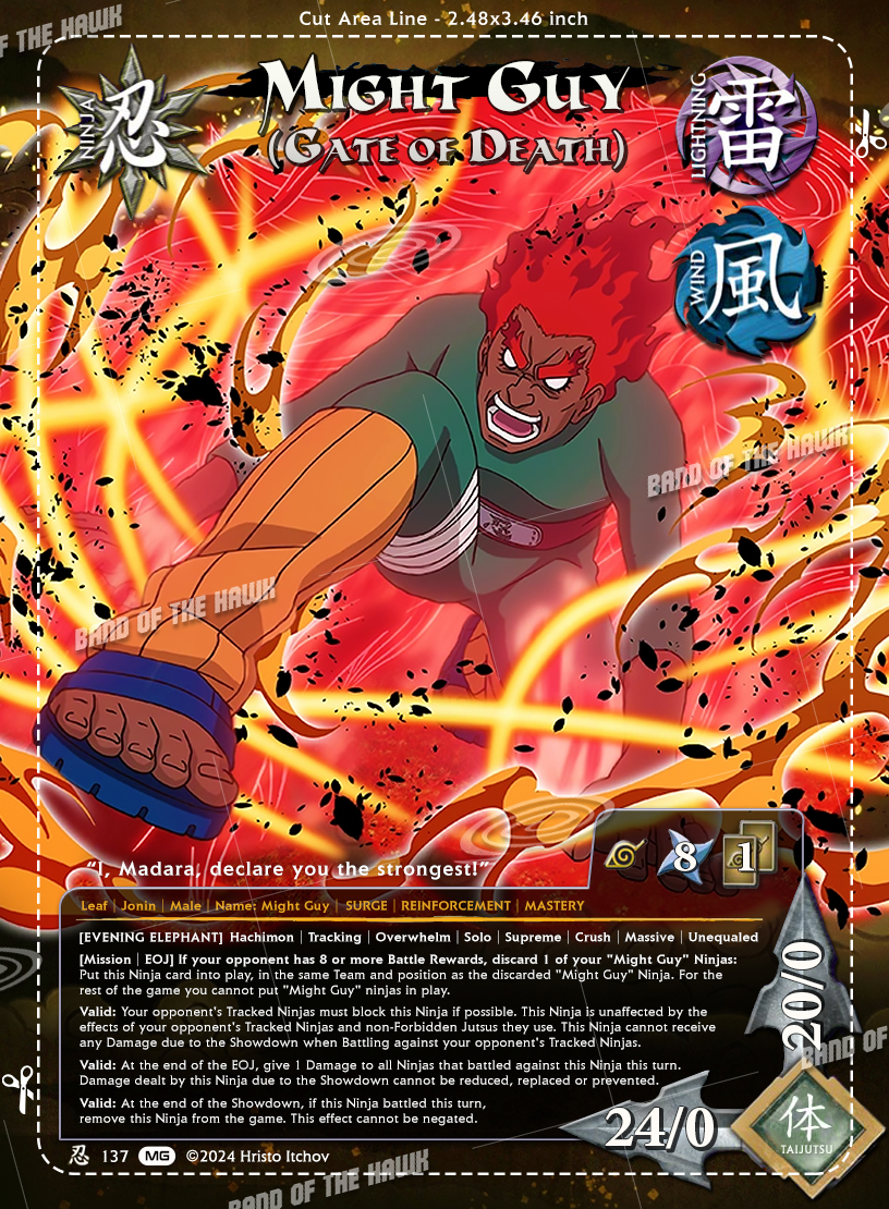 n137 - Might Guy (Gate of Death) - Promo Ninja card from our Might Guy card set for Naruto CCG.