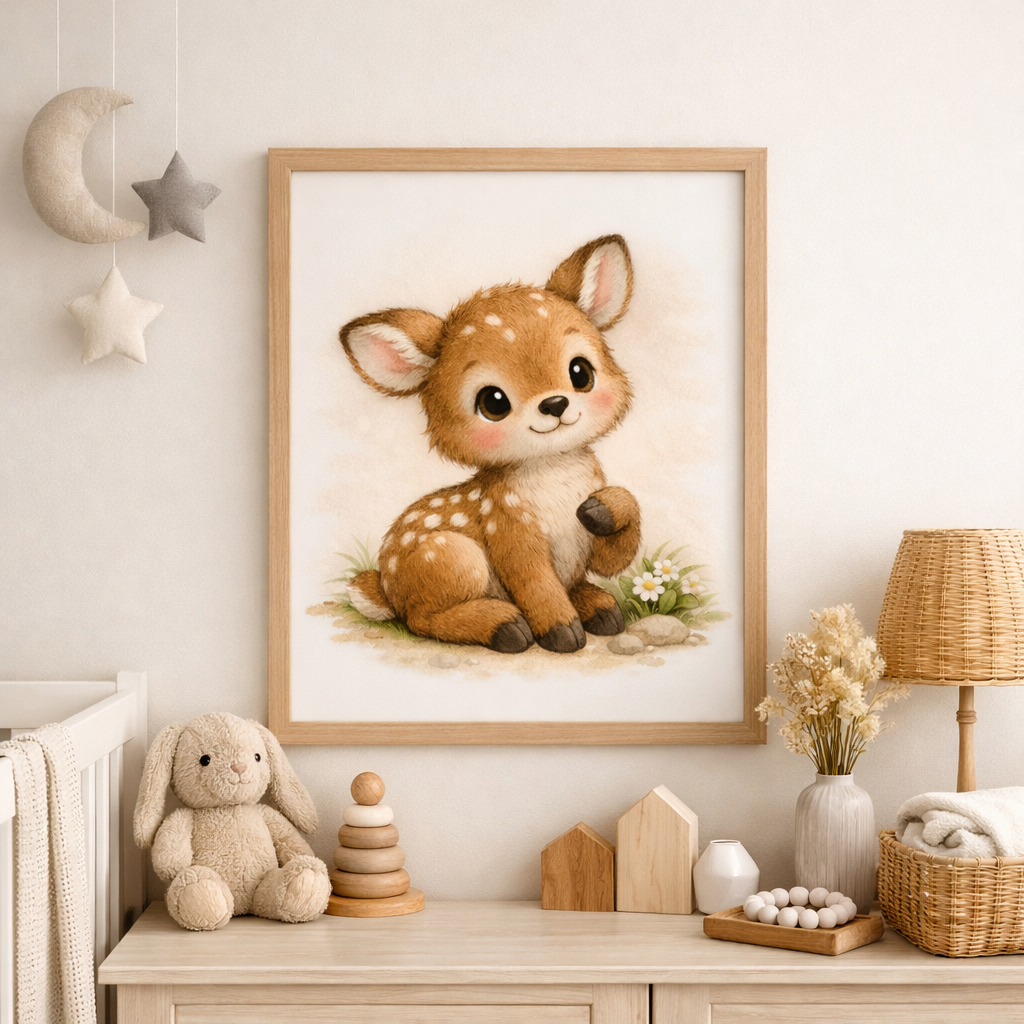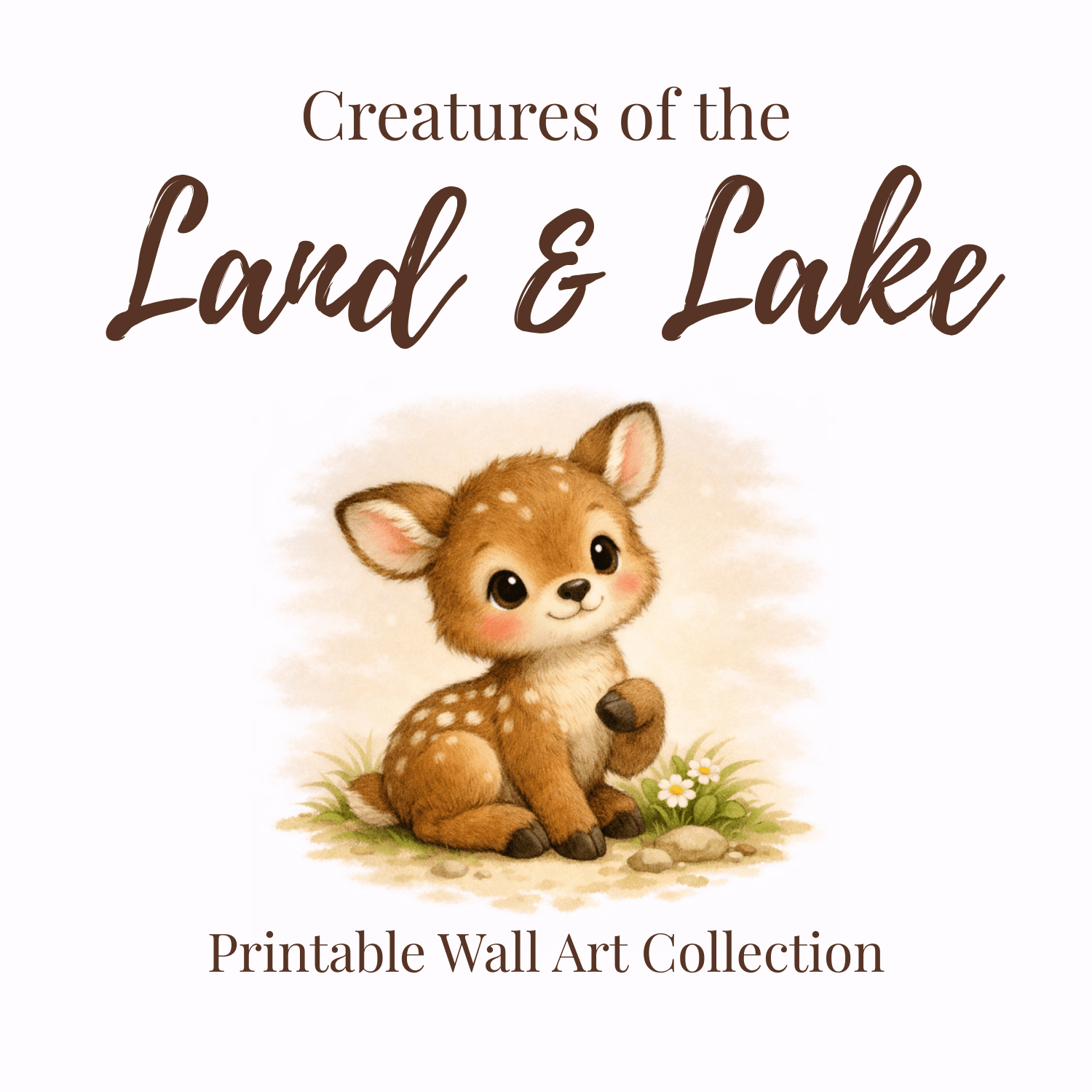 Bring calm, modern magic into your nursery, kids’ room, classroom, or family space with this painterly printable wall art featuring a gentle Fawn from the Creatures of the Land & Lake collection. Designed with softness and intention, this artwork adds warmth, comfort, and quiet wonder to any environment.