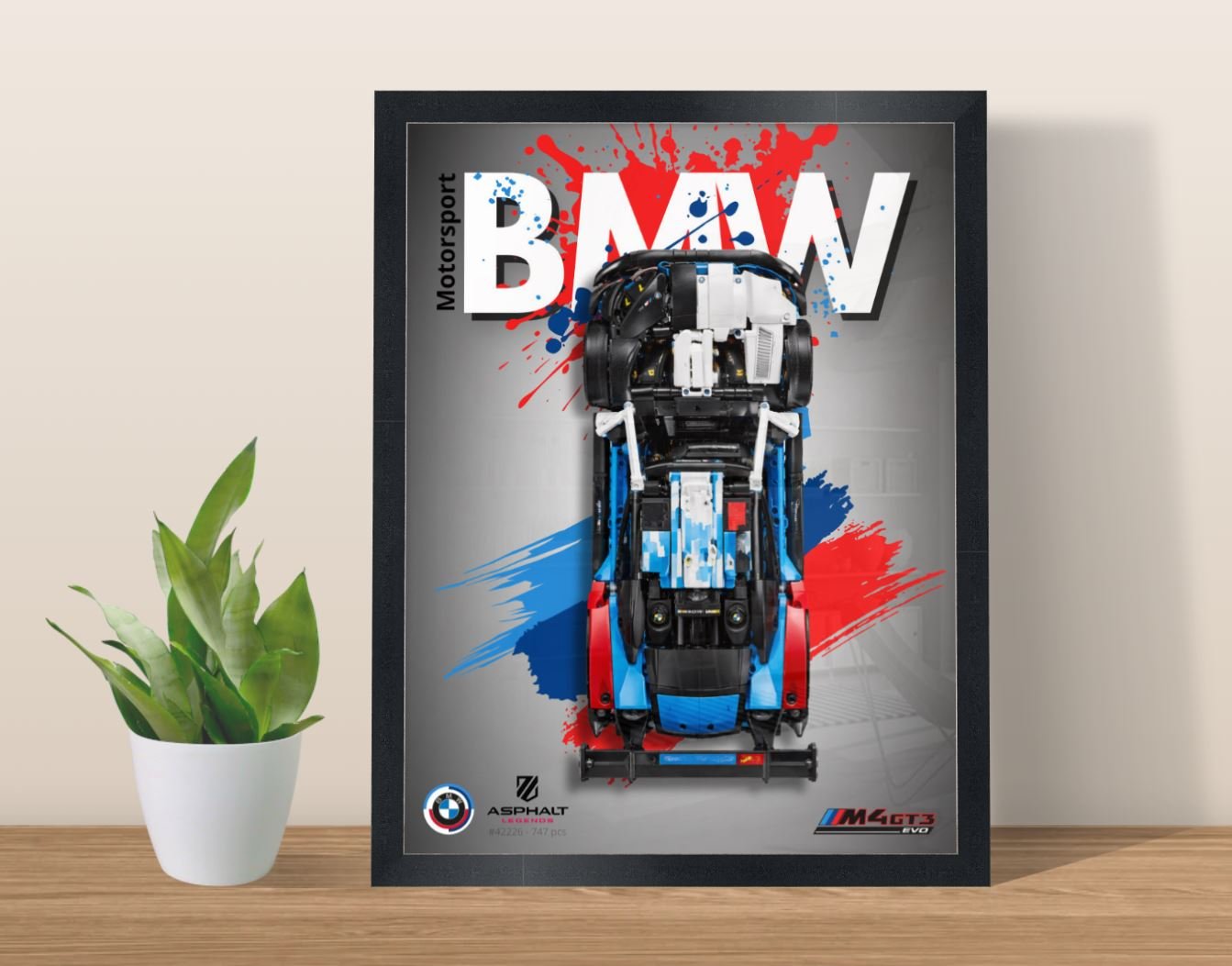 Digital poster compatible with LEGO® Technic BMW M4 GT3 EVO #42226, created to enhance your display with a bold and dynamic BMW Motorsport-inspired design.