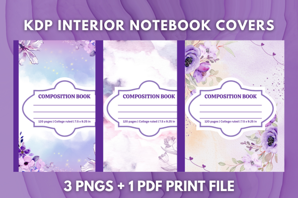 - 3 Purple Aesthetic Composition Notebook Covers Canva Editable Link + BONUS covers added!