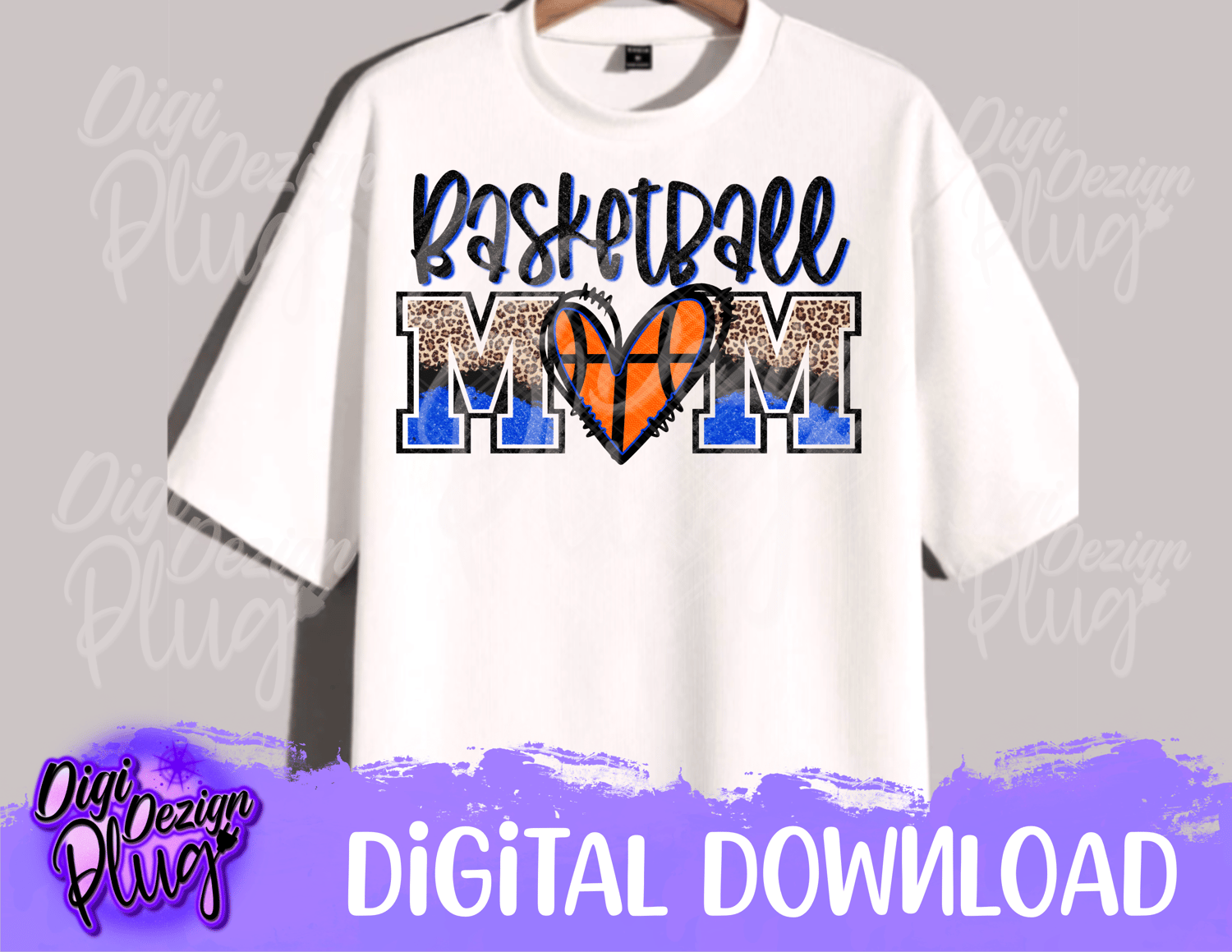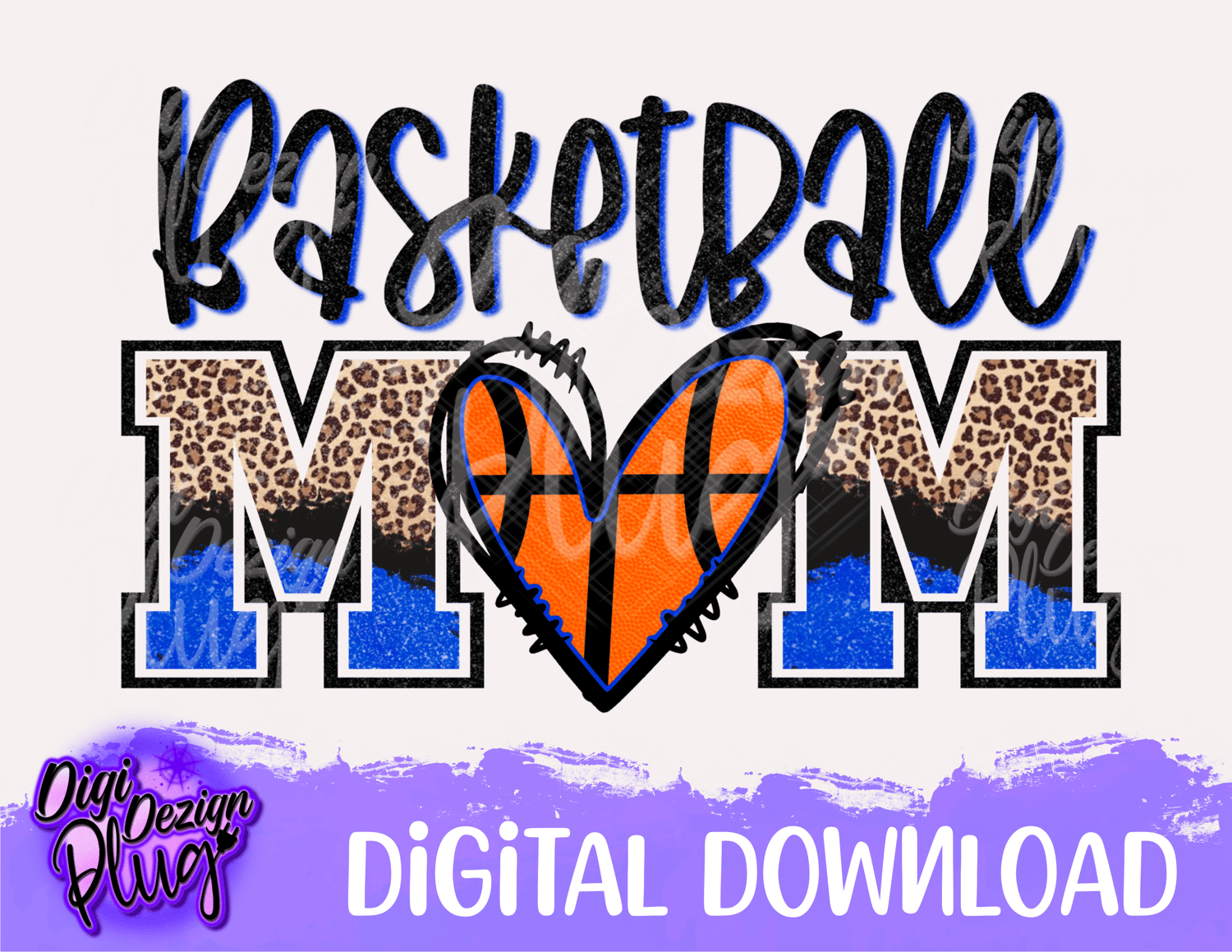 Basketball Mom Png- Blue Basketball Mom Cheetah Print-Digital Download