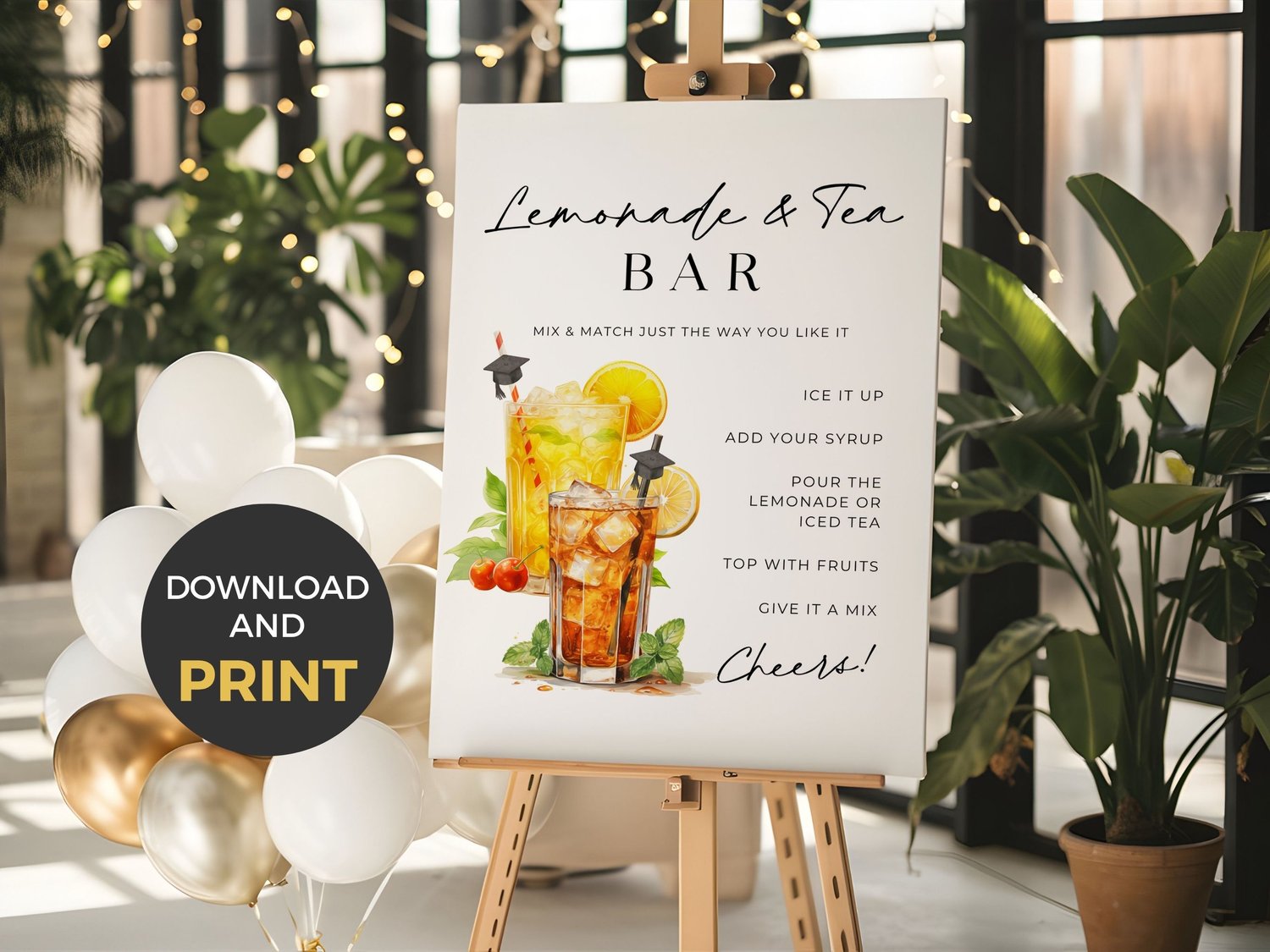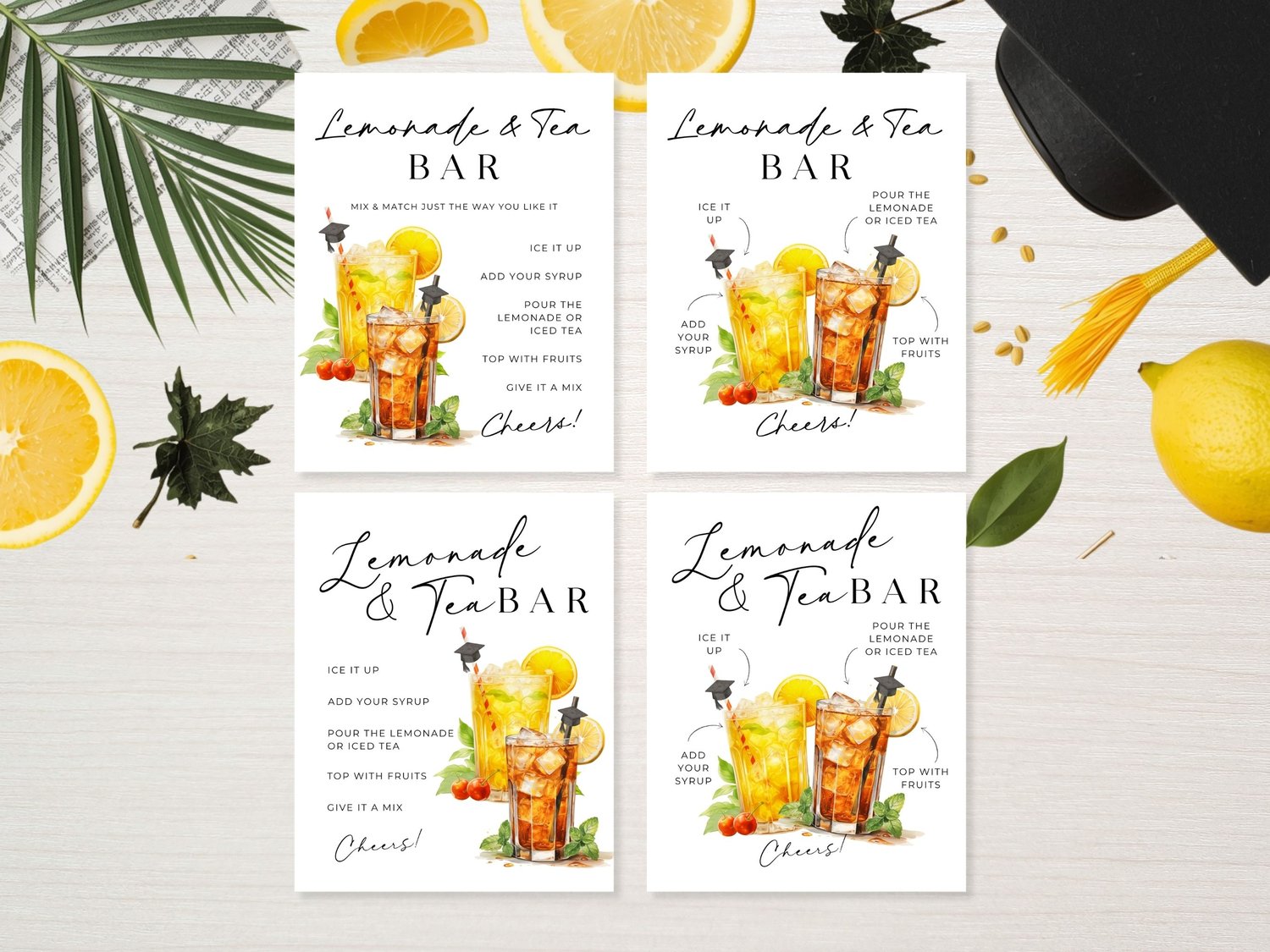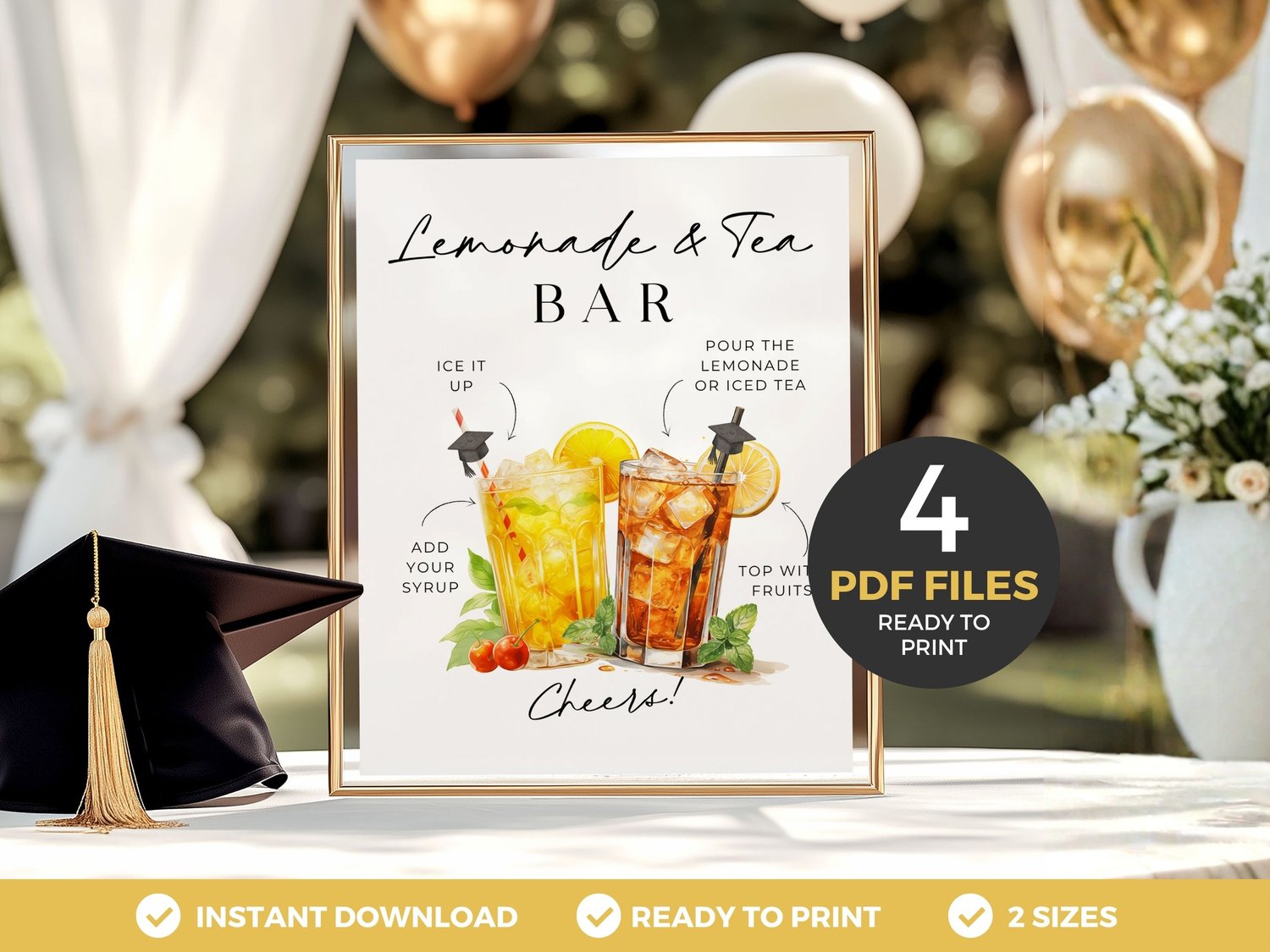 Upgrade your graduation party with this elegant Lemonade & Tea Bar sign β perfect for guiding guests through your drink station while adding a clean, stylish touch to your setup.
