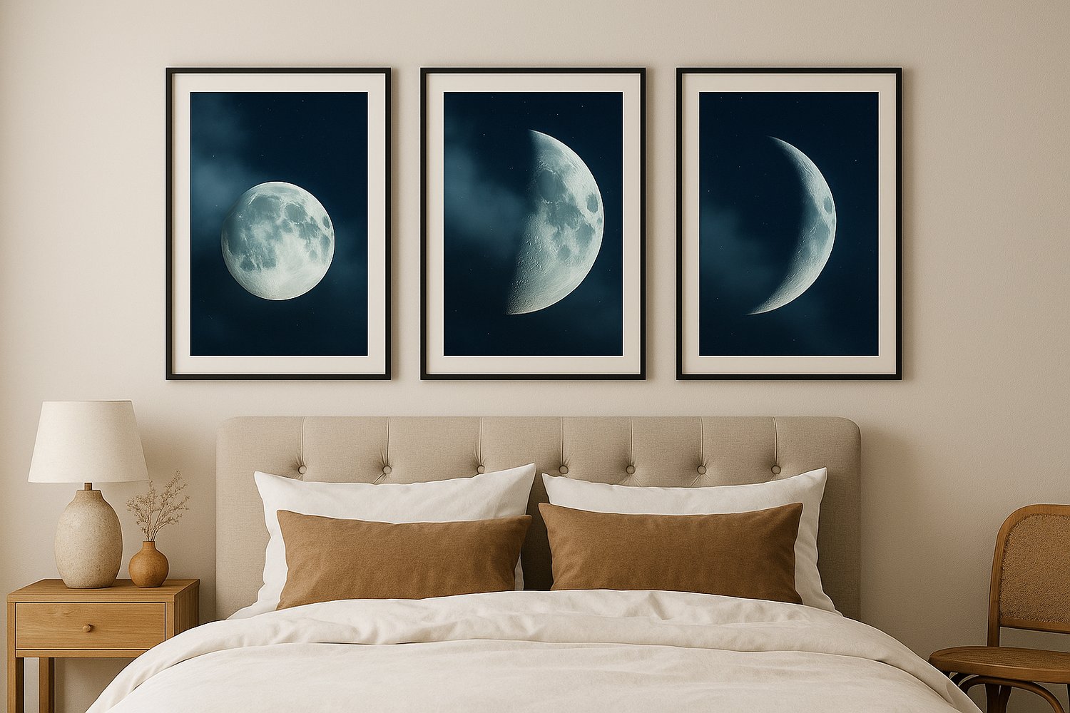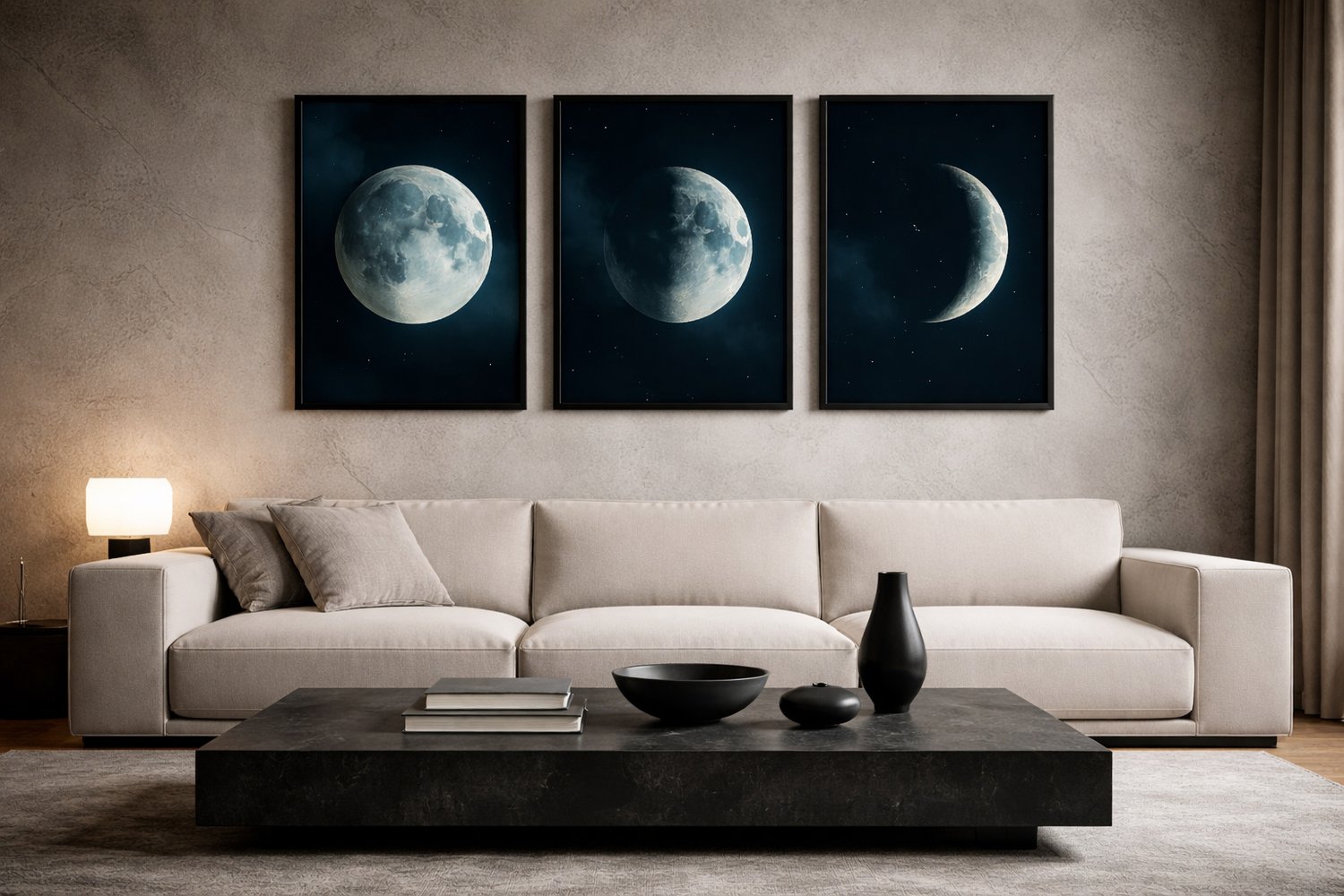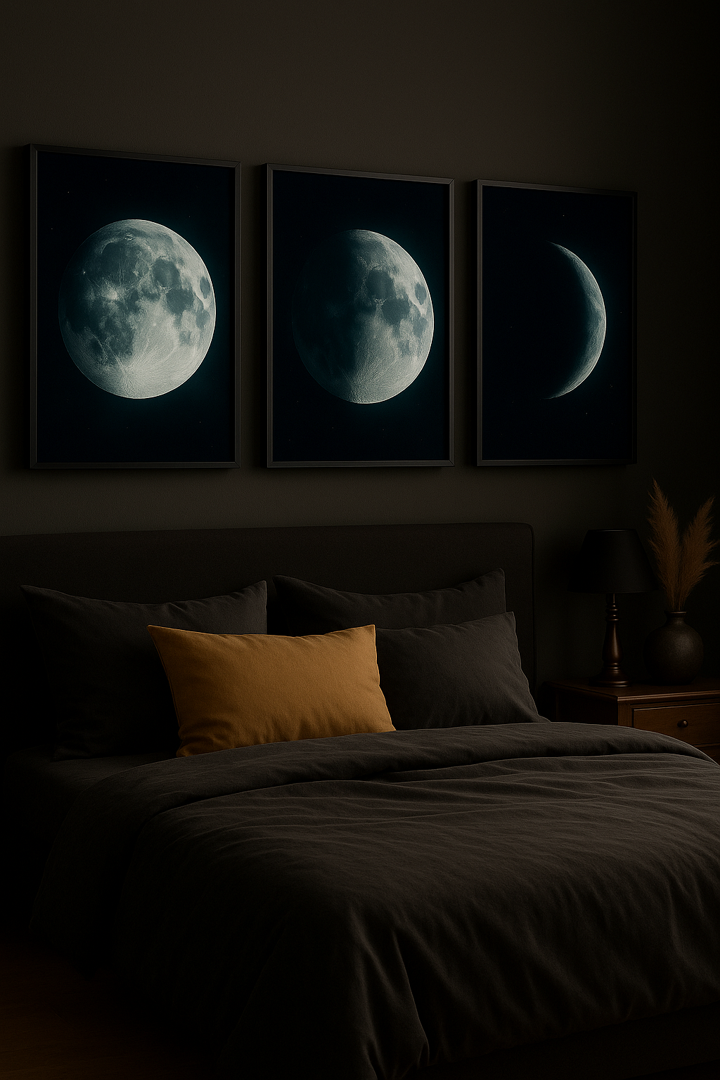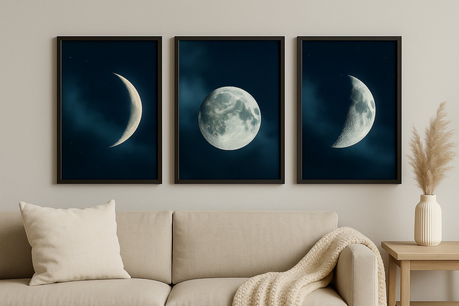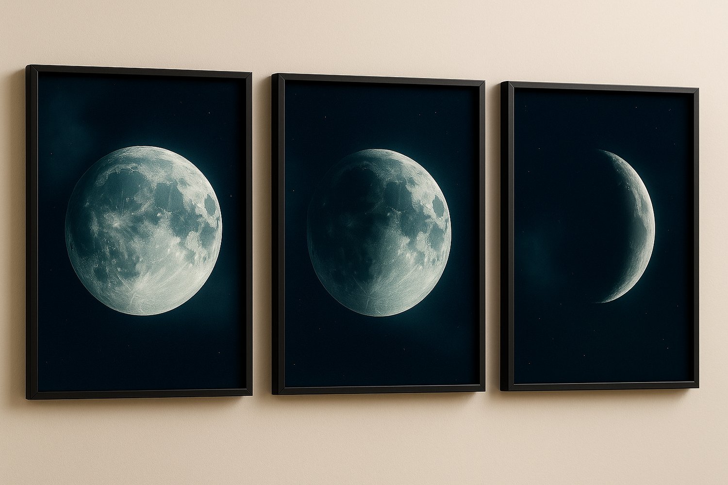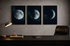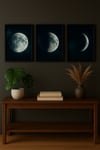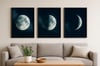Moon Phase Wall Art Set – Full, Half & Crescent Moons | Lunar Printable Decor | Dark Aesthetic Digital Download