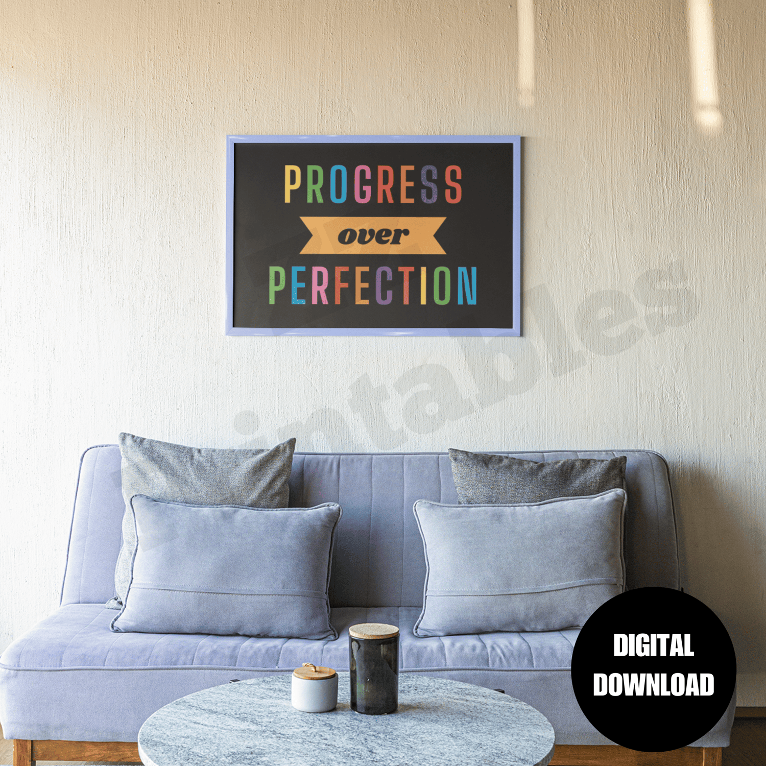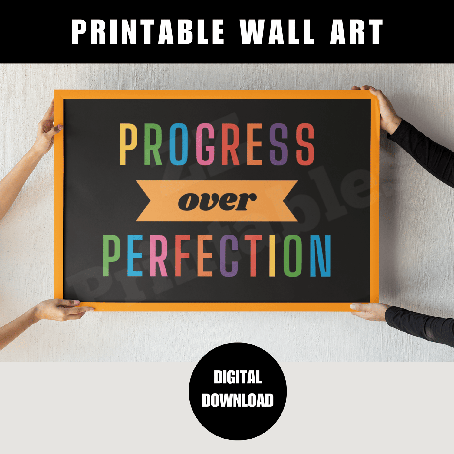 Progress Over Perfection Print School Teacher Student Poster Colorful Text Artwork Class Decor Printable Wall Art Digital Download JPEG