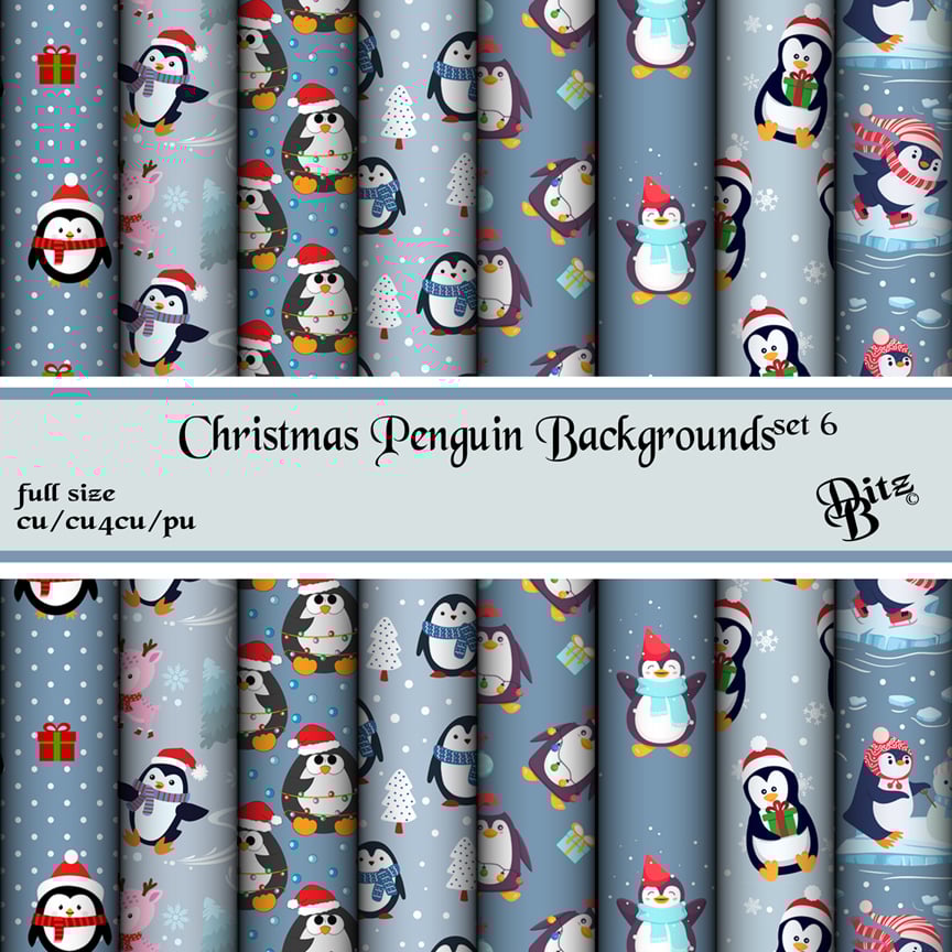 Christmas Penguin Backgrounds Set 6